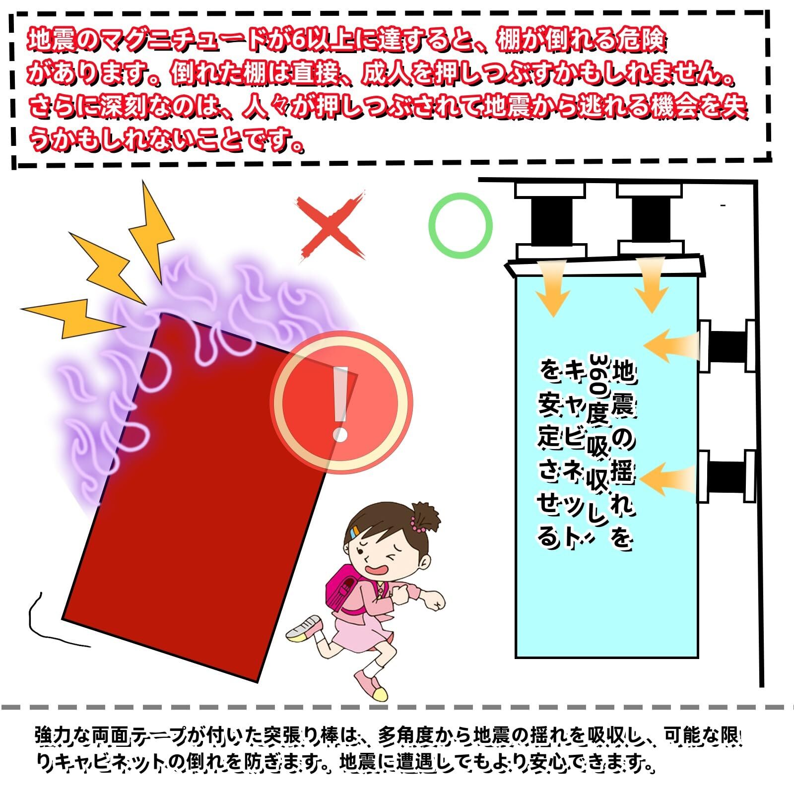 [パッケージ内容] この製品セットには、家具固定用の短い棒が4本、強力な両面テープが8個、そして固定ポール用のクッションパッドが4個含まれています。あなたの実際のニーズに応じて使用することができます。