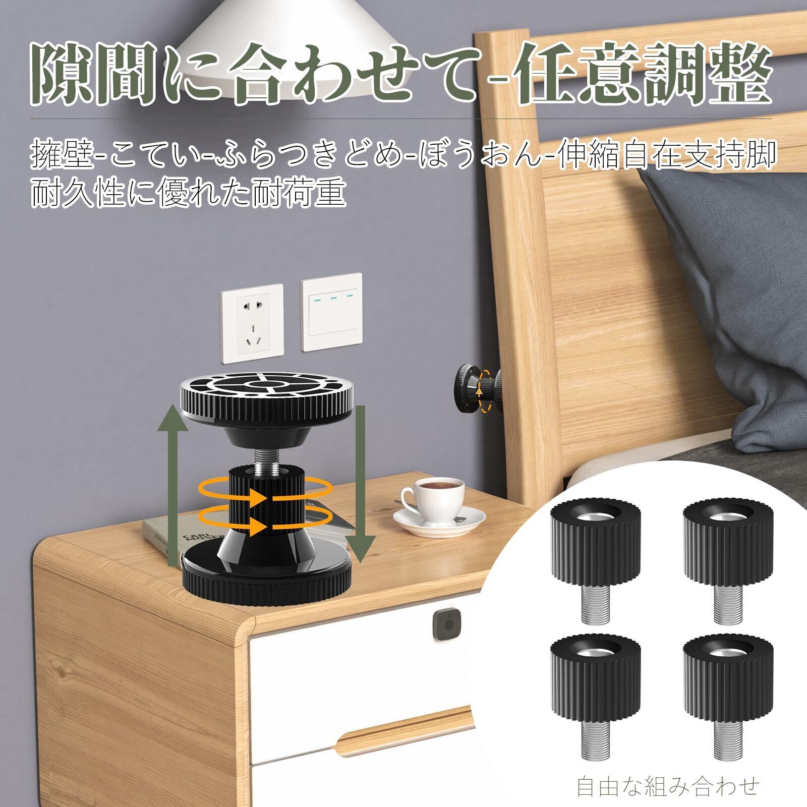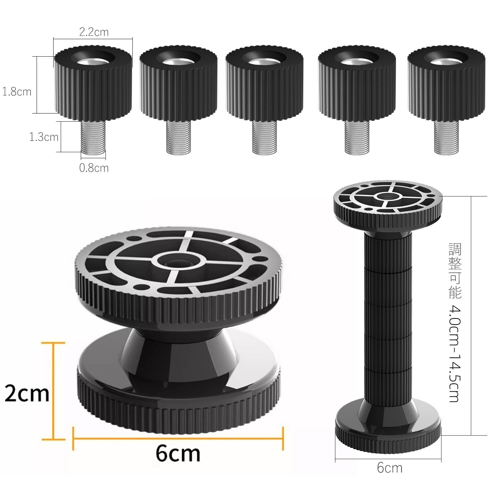【柔軟な調整】地震 転倒防止器カラー:ホワイト、ブラック。4つのナットが付いていると、調整可能な長さは4.0〜12.5cmです。5つのナットが付いていると、調整可能な長さは4.0〜14.5cmです。シングルナット高さ:1.8 cm。ナットは自由に取り外し、高さを増減することができる。