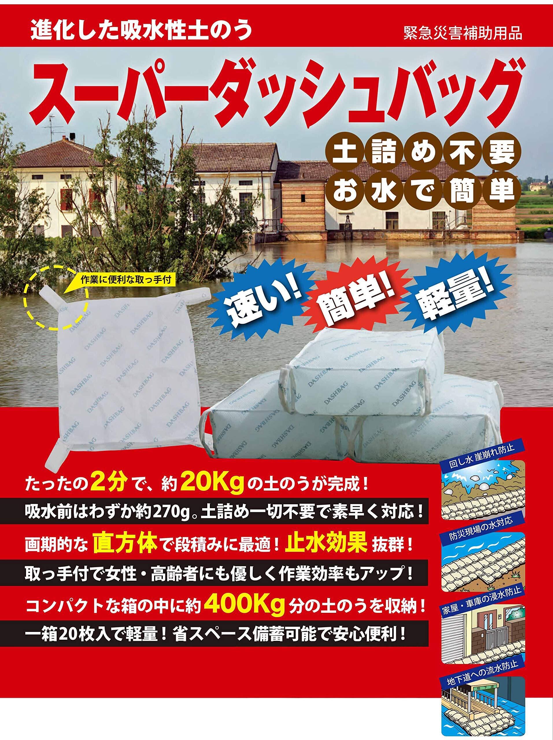 トンボ スーパーダッシュバッグ 吸水性土のう 角形不織布タイプ DBW-02 【10袋入】