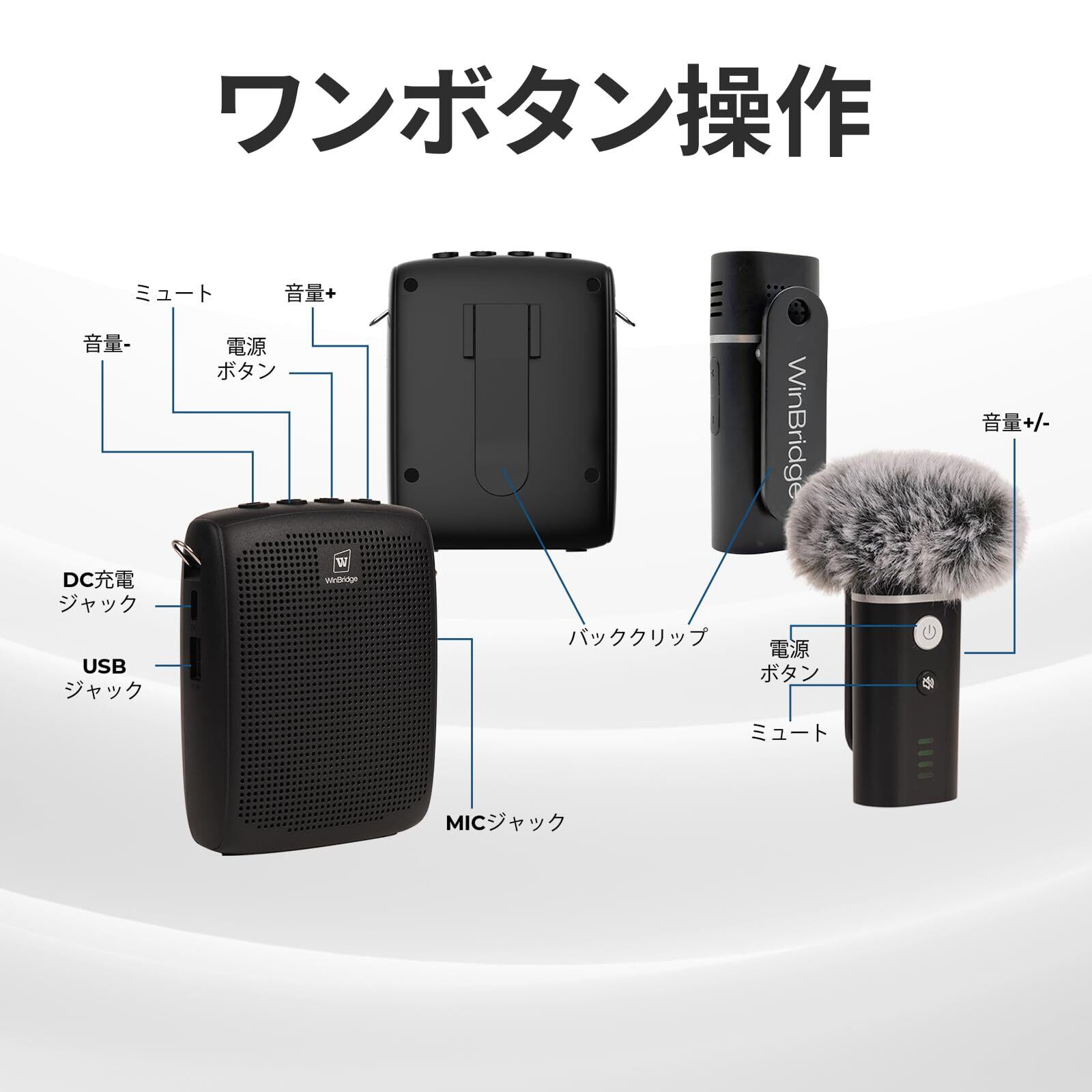 W WINBRIDGE ポータブル拡声器 ハンズフリー拡声器 2600mAh 軽量 小型 拡声器15W 日本語説明書付き 006