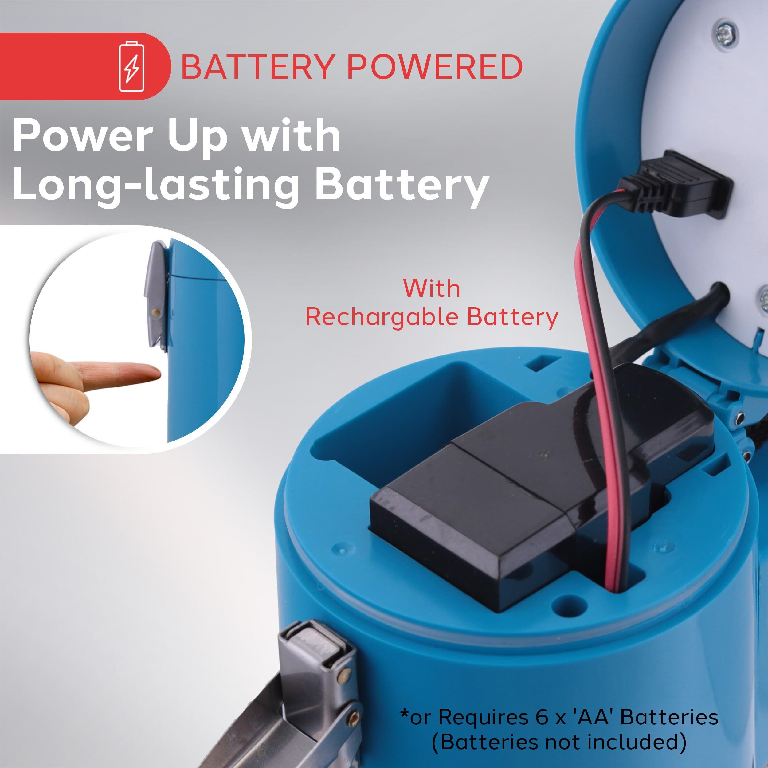 【電池式メガホン】6本の単1乾電池で動作します。電池は含まれておりません。カーボン電池ではなく、アルカリ電池を推奨します。