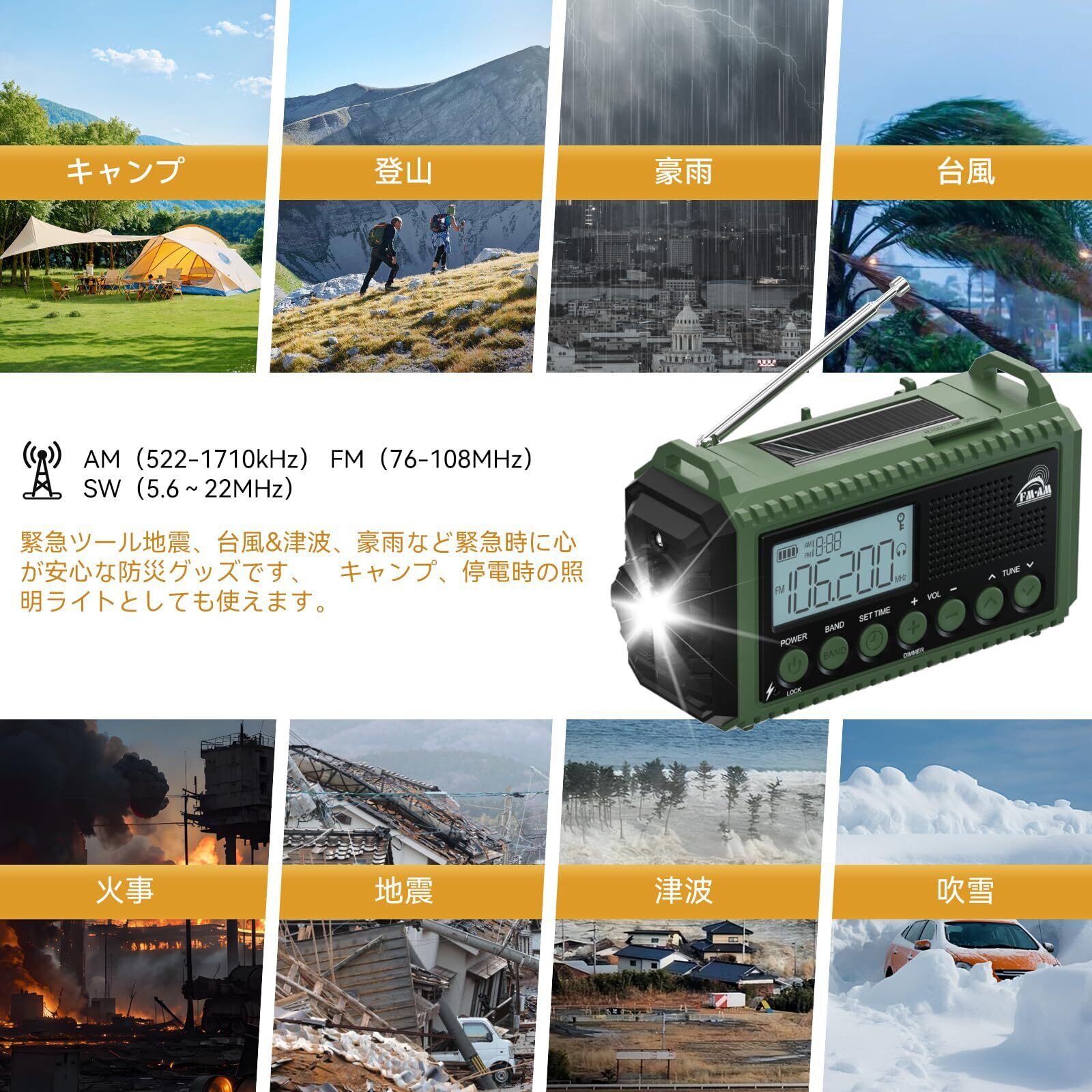 【特価セール】Mesqool 防災ラジオ 12000mah ソーラー充電/手回し/懐中電灯/読書ランプ付 FM/SW/AM/対応(FM76.00Mhz - 108MHz) SOSアラート付き小型ラジオ スマホに充電可能 屋外で使えるポータブルラジオ 乾電池 USB充電 地震 震災 津波 台風などの緊急対策 アウトドア 防災グッズ 非常用照明器具 アーミーグリーン | Cherry Blossoms