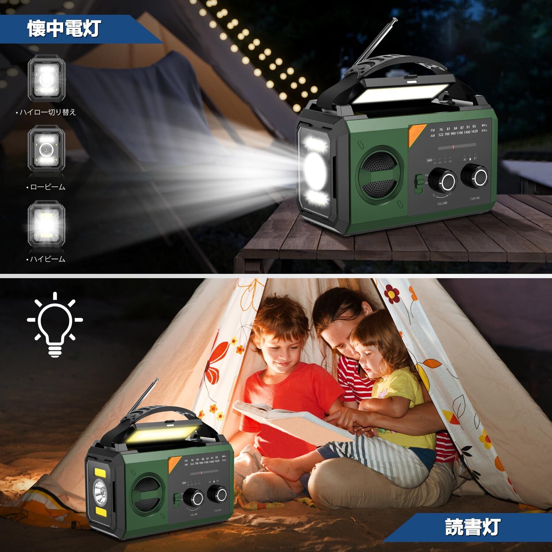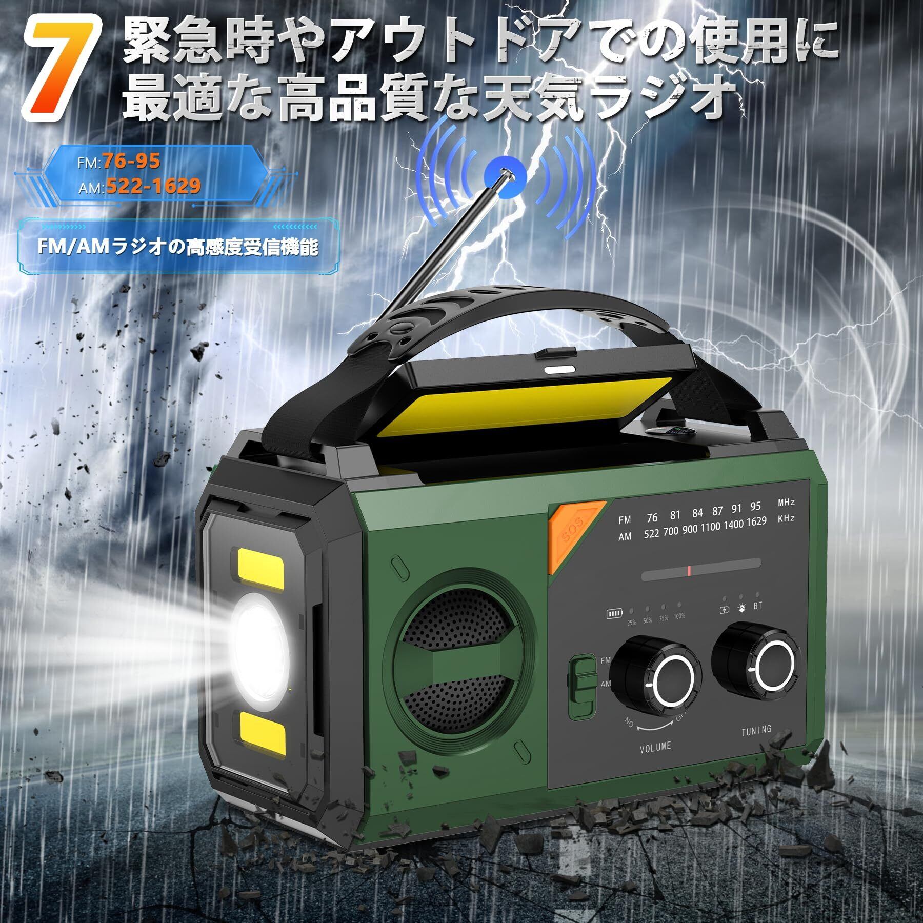 【在庫セール】【PSE認証済み 20000mAh大容量バッテリー】防災ラジオ 多機能ラジオ 手回し充電 ソーラー充電 USB充電 AM/FM対応 非常用ラジオ Bluetooth5.3 懐中電灯 5V/3Aスマホに充電可能 携帯ラジオ SOSアラート イヤホンジャック付き コンパス METI認定済み 緊急事態に適用 台風/地震/津波/停電などの緊急対策 日本語取扱説明書 グリーン | Cherry Blossoms