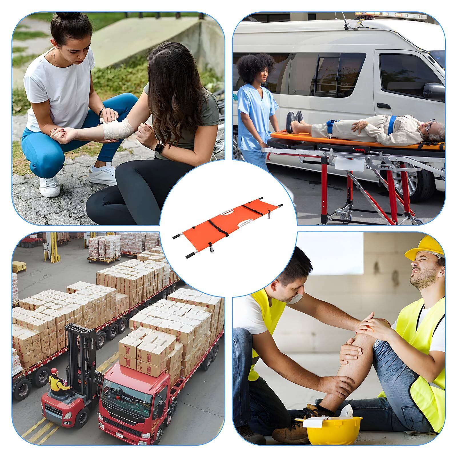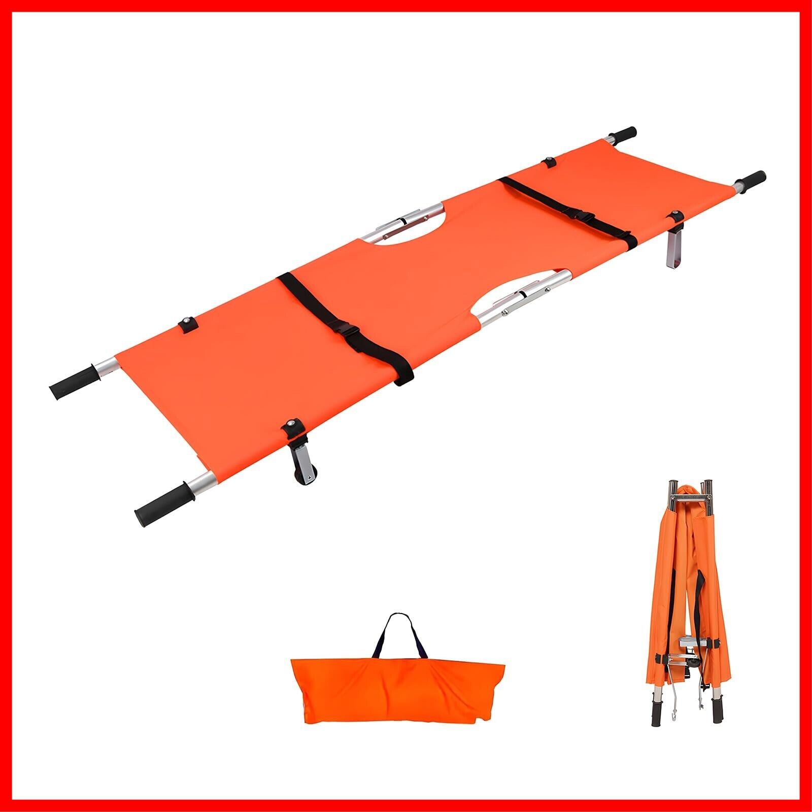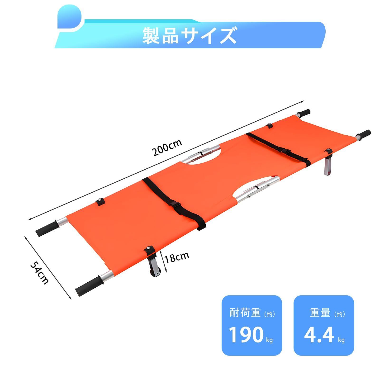 SunlitCorner たんか タンカ ストレッチャー 簡易担架 2つ折り 簡易折りたたみ担架車 ステンレス製、錆びず、変形しない、収納バッグ付き、190kg 耐荷重、静音キャスター付きでスムーズ移動、折りたたみ設計で収納便利、厚手支架で安全安定、オックスフォード通気性素材で防水耐磨耗・除菌対策、安全ベルト付属で患者をしっかり固定、滑り止めグリップで持ち運び安心(200*54*18cm)