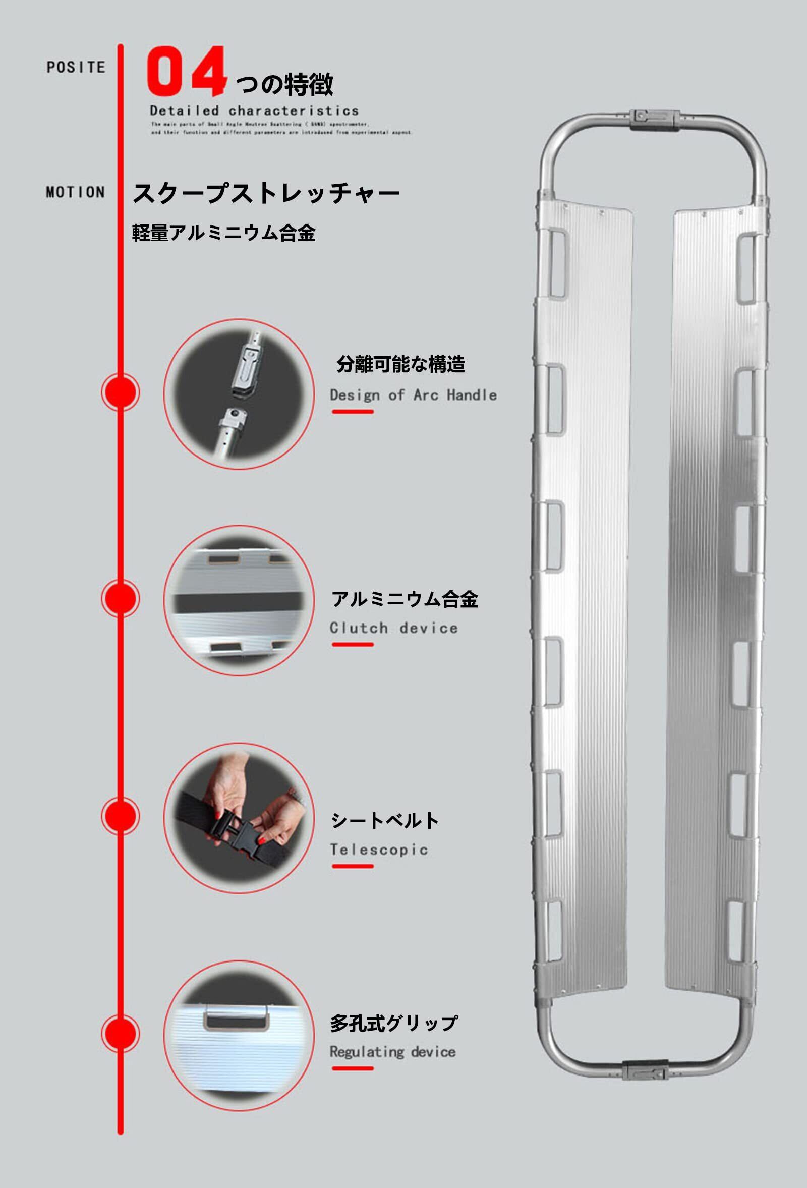 スクープストレッチャー 軽量 左右分離可能 アルミニウム合金 救援 災害 病院 (左右分離担架)