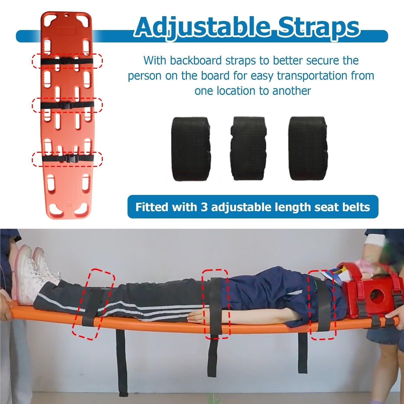 調節可能なストラップ:遭難者を救助する際、ストラップは体の大きさや状態に応じて柔軟に調整でき、担架ボードにしっかりと固定して滑りを防ぎます。