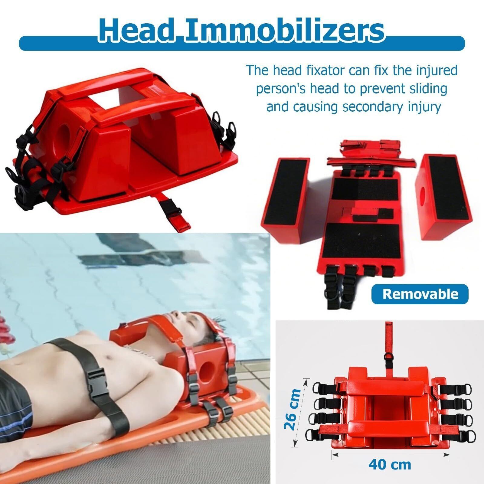 - ヘッドイモビライザーは頭部の輪郭にぴったりフィットし、移動中に負傷者が再び負傷するのを防ぎます。