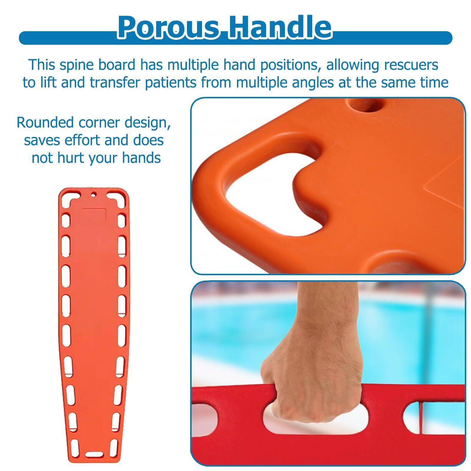 水難救助担架 緊急スポーツ脊椎ボードバックフロート - 患者用ポータブルスポーツボードストレッチャーバックボード - ストラップ、ヘッドイモビライザー、ネックブレース付きウォーターフローティングストレッチャーバックボード(Orange)