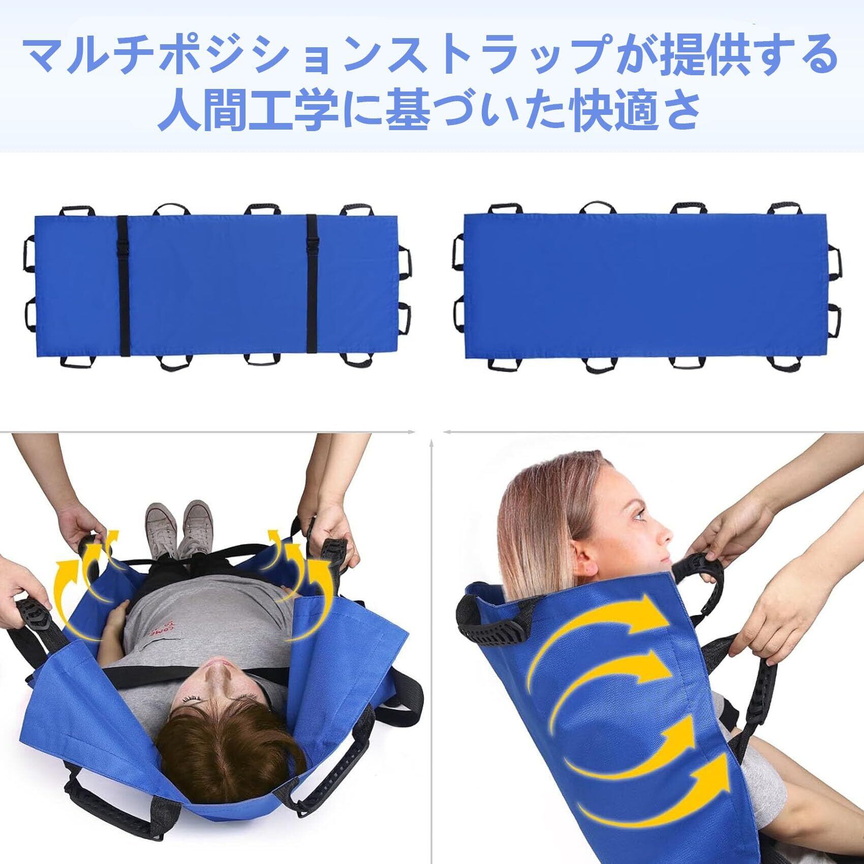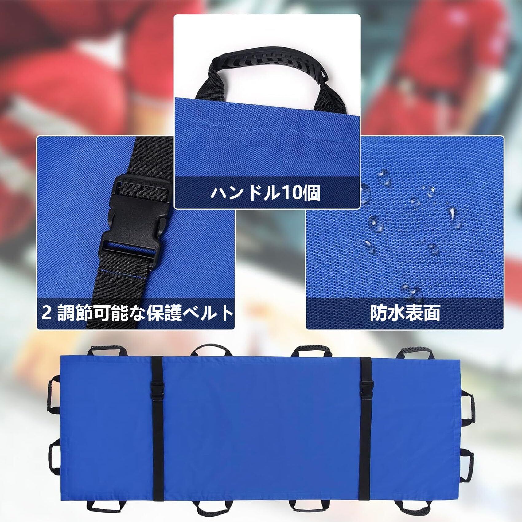 折りたたみ 担架 肩掛け 担架 防水 移易担架マット コンパクト ストレッチャー 救護用 軽量 安全ベルト 防災グッズ 搬送用品 滑り止め 移動シート 介護用 老人 お年寄り 非常用 避難 持ち運び 便利 12ハンドル 収納袋付き blue