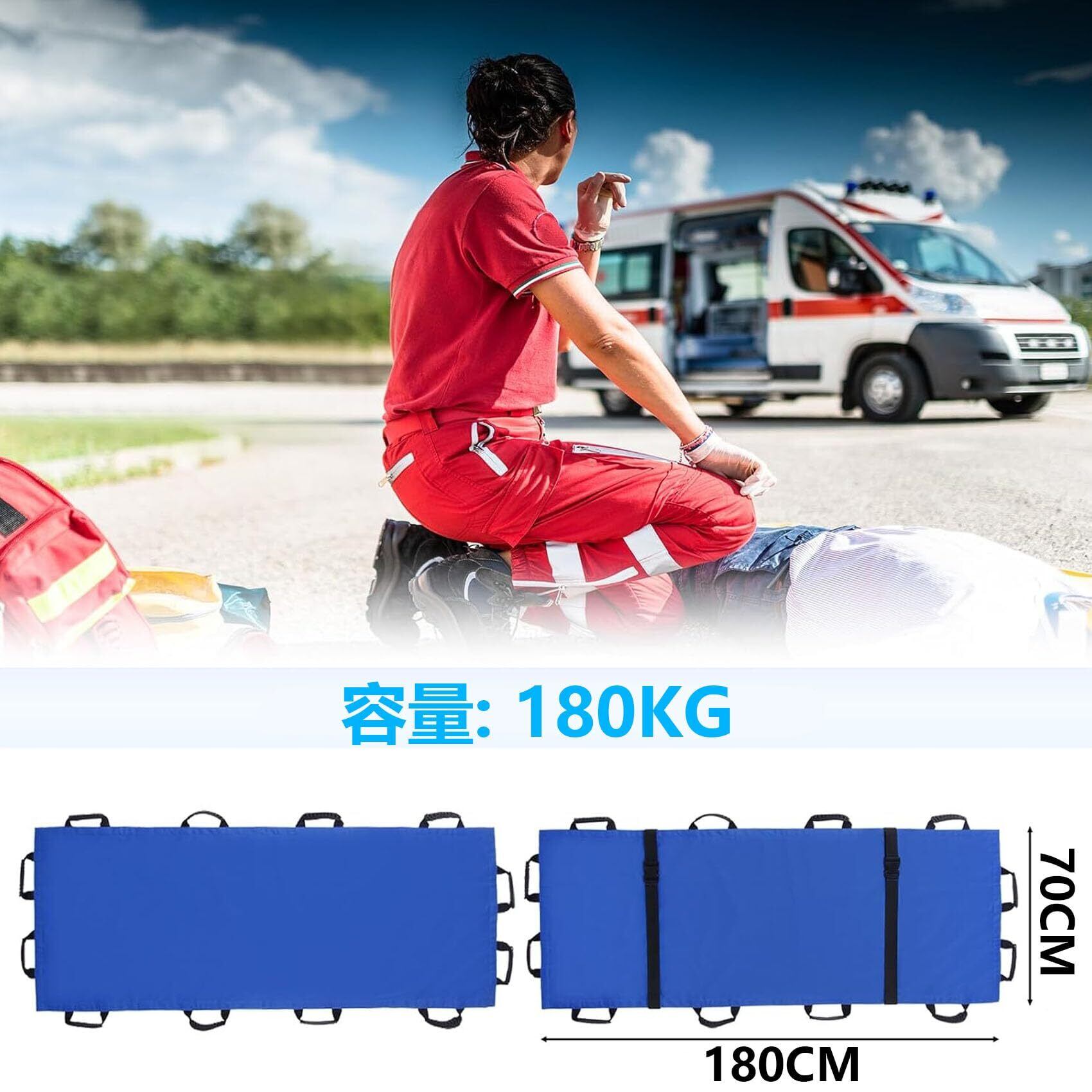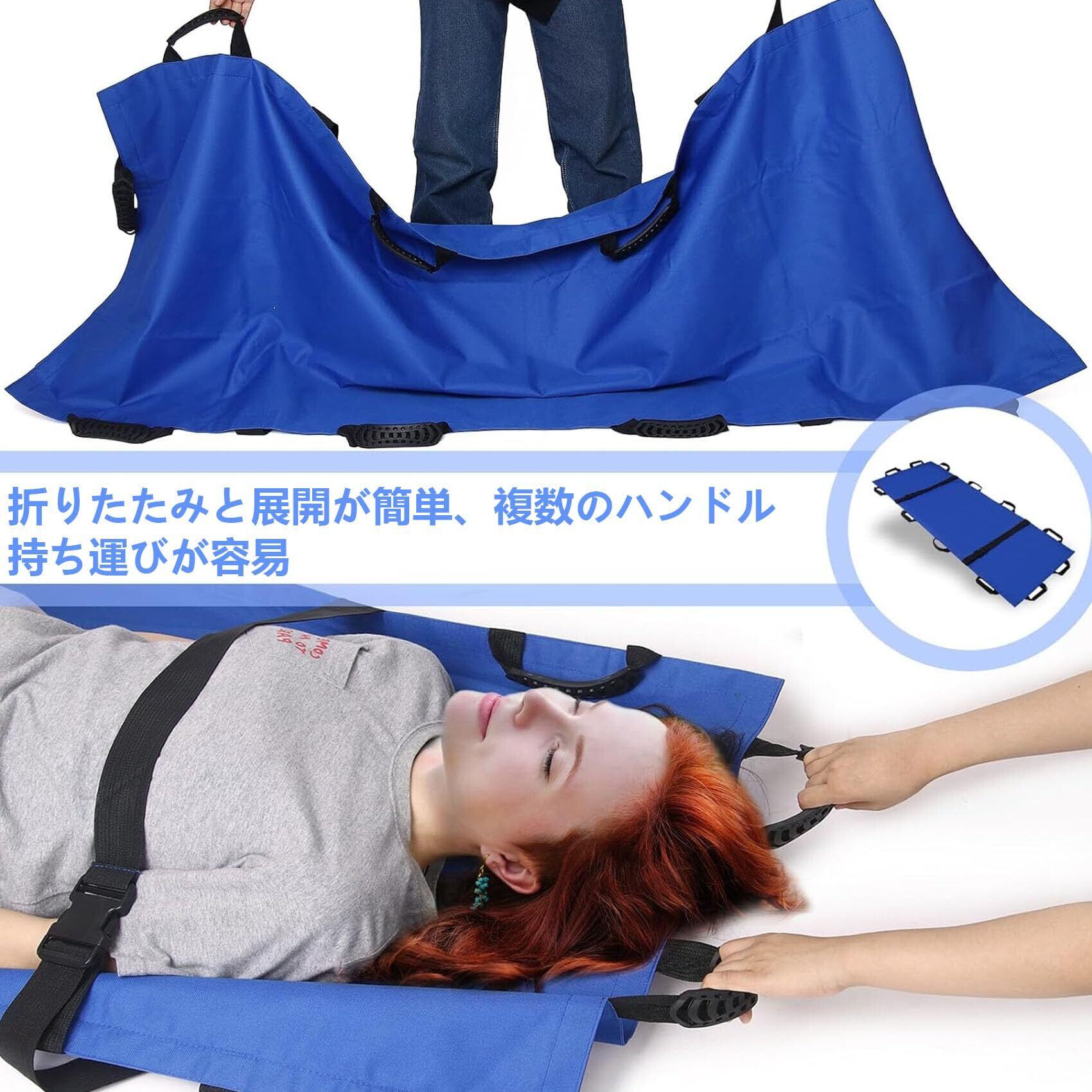 【在庫セール】折りたたみ 担架 肩掛け 担架 防水 移易担架マット コンパクト ストレッチャー 救護用 軽量 安全ベルト 防災グッズ 搬送用品 滑り止め 移動シート 介護用 老人 お年寄り 非常用 避難 持ち運び 便利 12ハンドル 収納袋付き blue | Cherry Blossoms