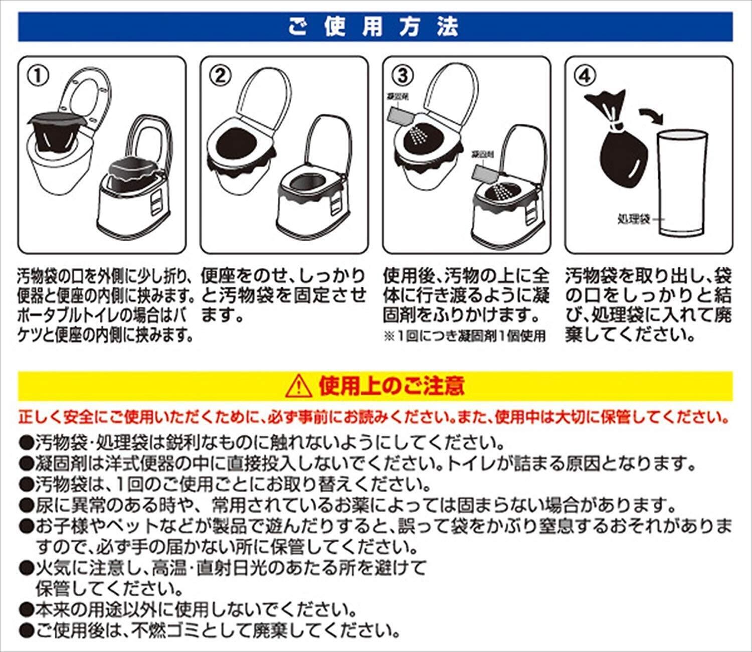 ・使用後、汚物袋の中の汚物に凝固剤をふりかける