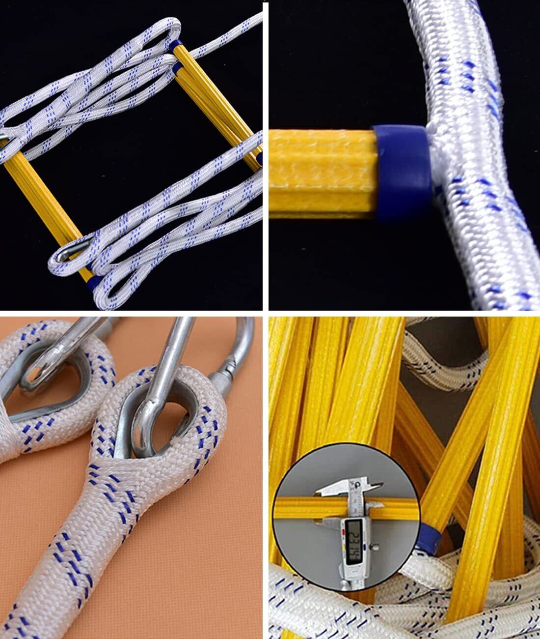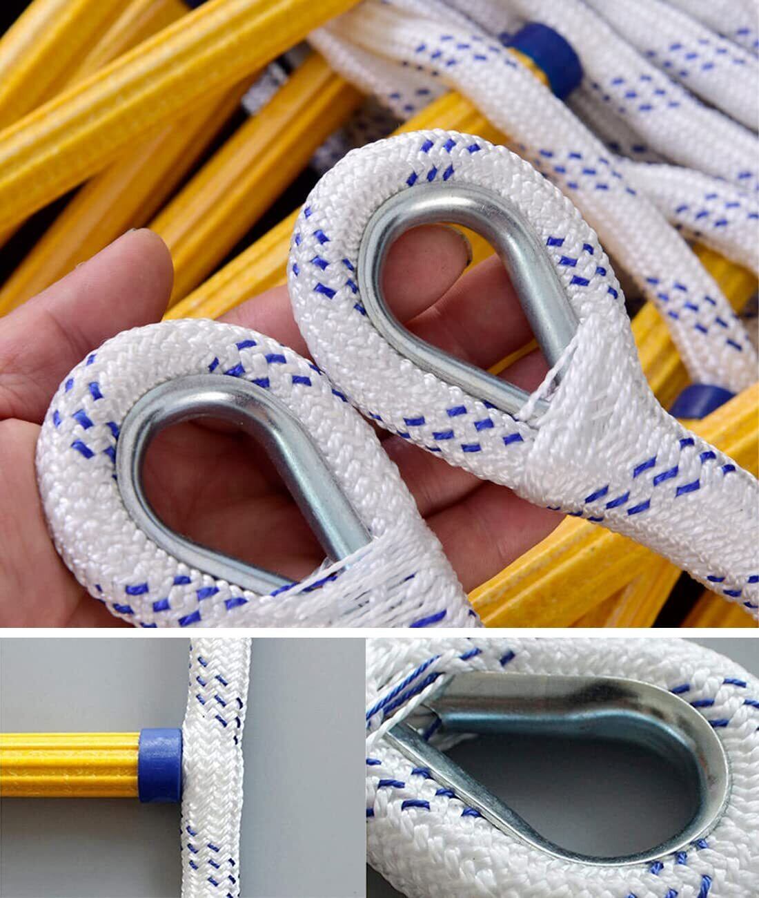 防災はしご 滑り止め 火災 脱出用 はしご 金属補強ラダー エポキシ樹脂 耐久性 柔らかく丈夫 コンパクト 引っ掛け 避難用 消防 緊急脱出 救命 樹木作業 設置練習 (5m)
