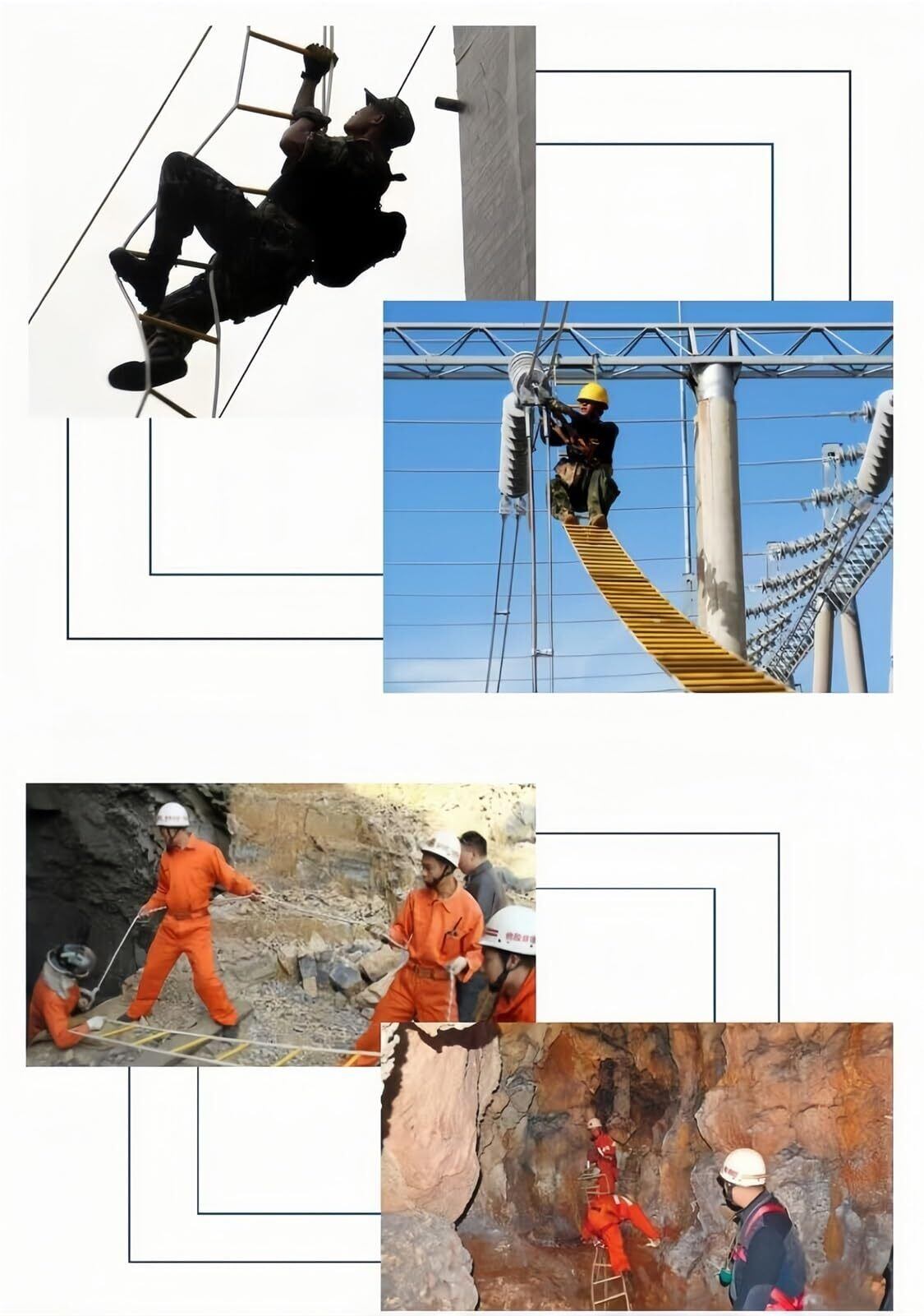 ∆ 当社の縄梯子は高強度アルミ合金と亜鉛メッキ鋼線ロープで作られ、耐摩耗性がよく、滑りやすくなく、登りやすい。使用時に立つスペースが広がり、登ったり降りたりするときに移動しやすくなります。サポートフレームは、長寿命と安全性を確保するために高強度のステンレス鋼で作られています。