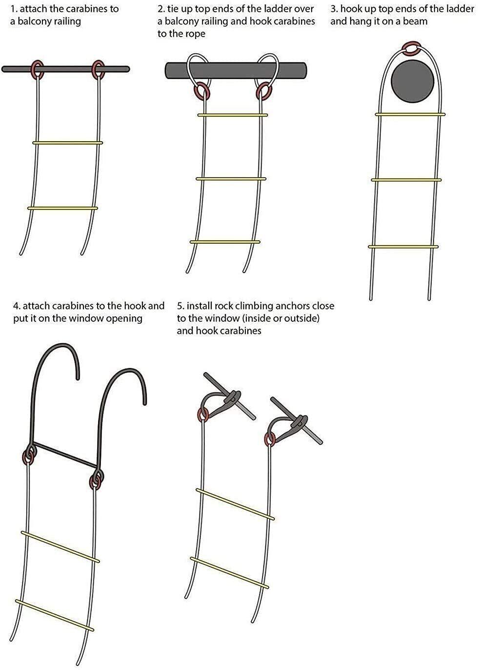 使いやすい:緊急事態はいつでもどこでもどこでも起こり、安全で便利なエスケープルートを提供します。それは異なるサイズのウィンドウフレームで使用することができ、緊急の状況の信頼性を確実にするためにツールなしで設置または取り付けすることができます。