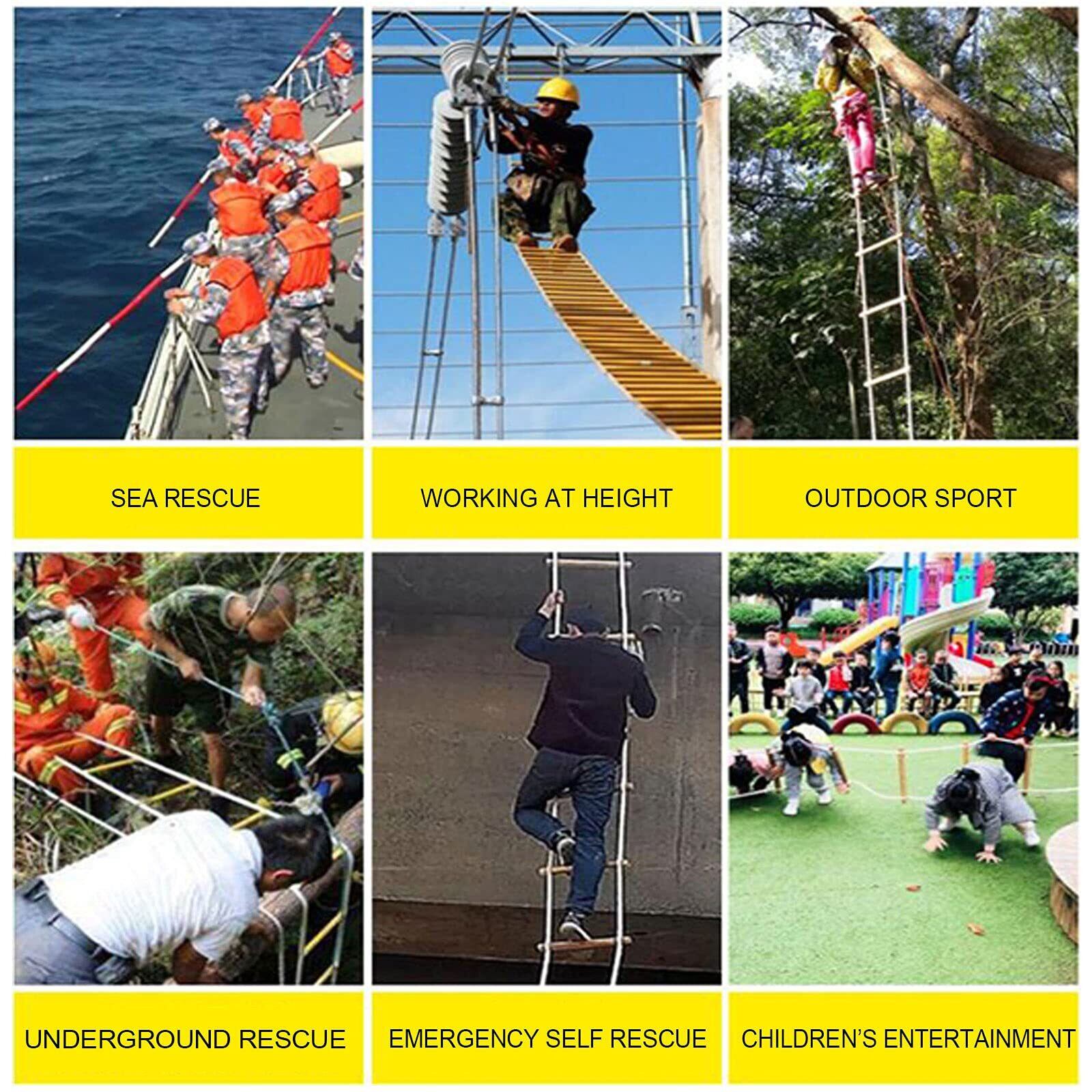 高品質の材質:逃げロープはしごは高強度樹脂と強力なナイロンでできています。これは耐久性があり安定しています。信頼できる安全装置であり、強い負荷容量があります。それはバッグに都合よく保管することができ、持ち運びが簡単です。