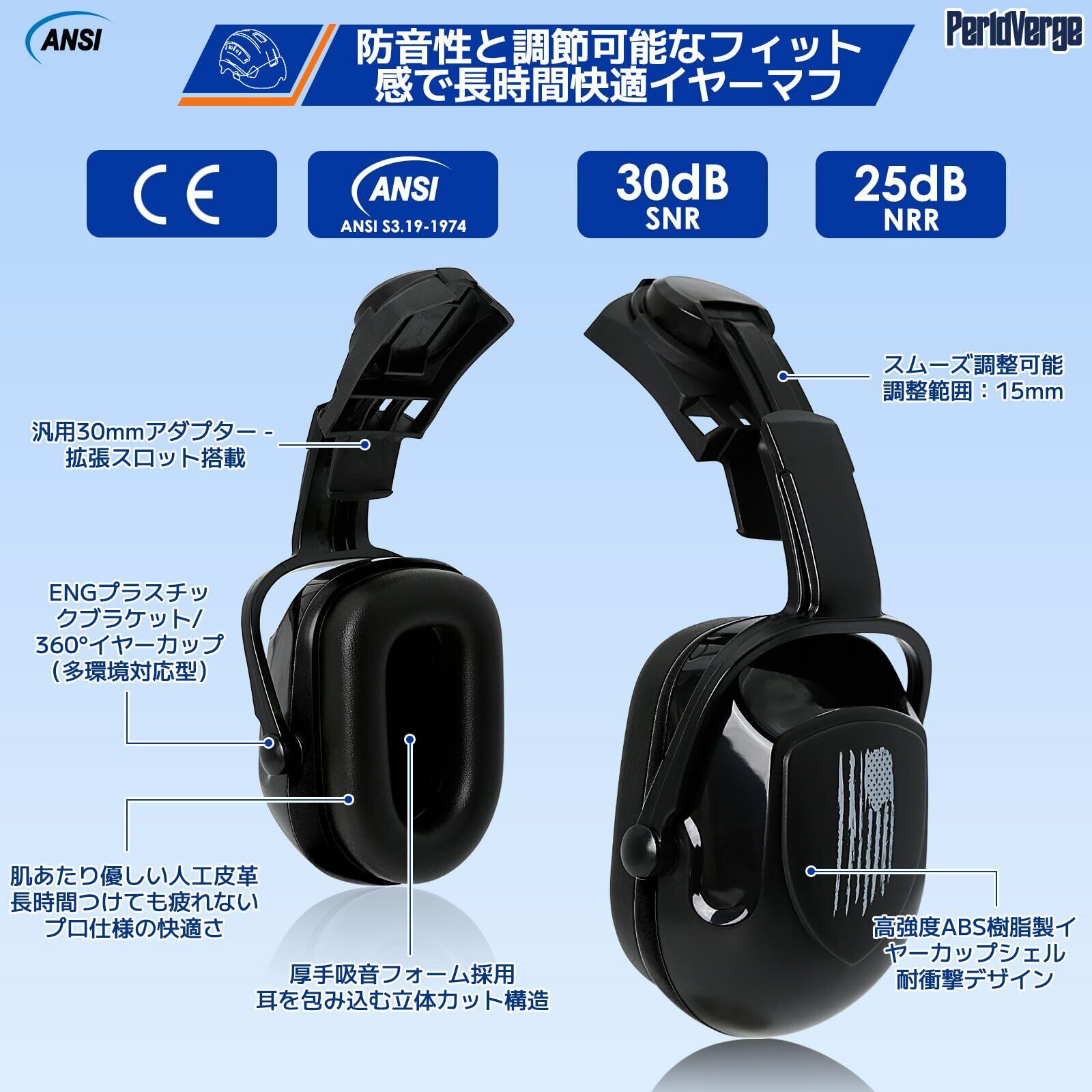 おしゃれな防音イヤーマフ:当社のヘルメットには、安全性とトレンド性を兼ね備えた最新デザインのブラックカラーのイヤーマフが標準装備されています。防音性能はSNR 30dB/NRR 25dBを実現し、ANSI S3.19 NRR:25dB、CE EN352 SNR:30dB、AUS/NZS S1270など国際安全規格に適合していることが試験で確認されています