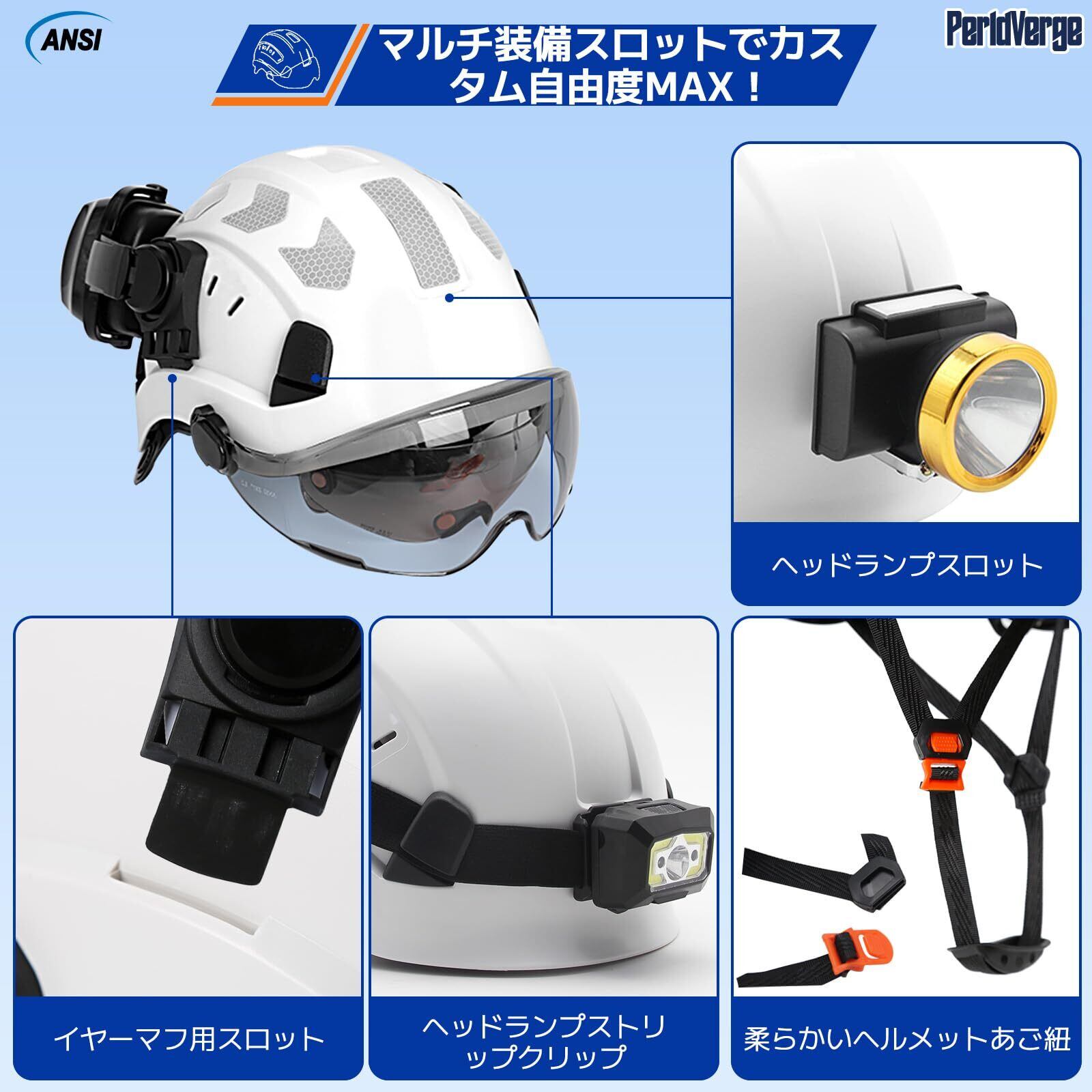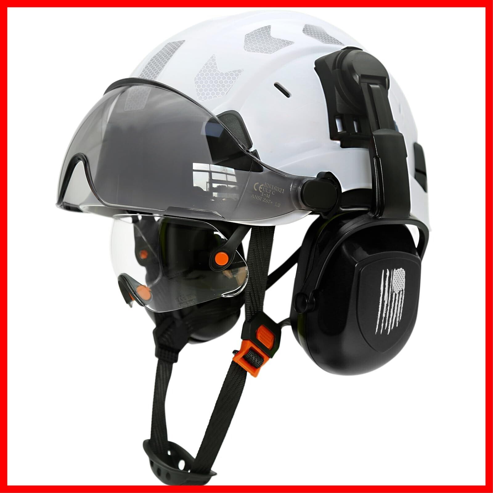 PerldVerge 職業用ヘルメット 安全ヘルメット クリアバイザーと耳栓付き 頭部保護 軽量 通気性 デュアルバイザー付き EN397規格準拠