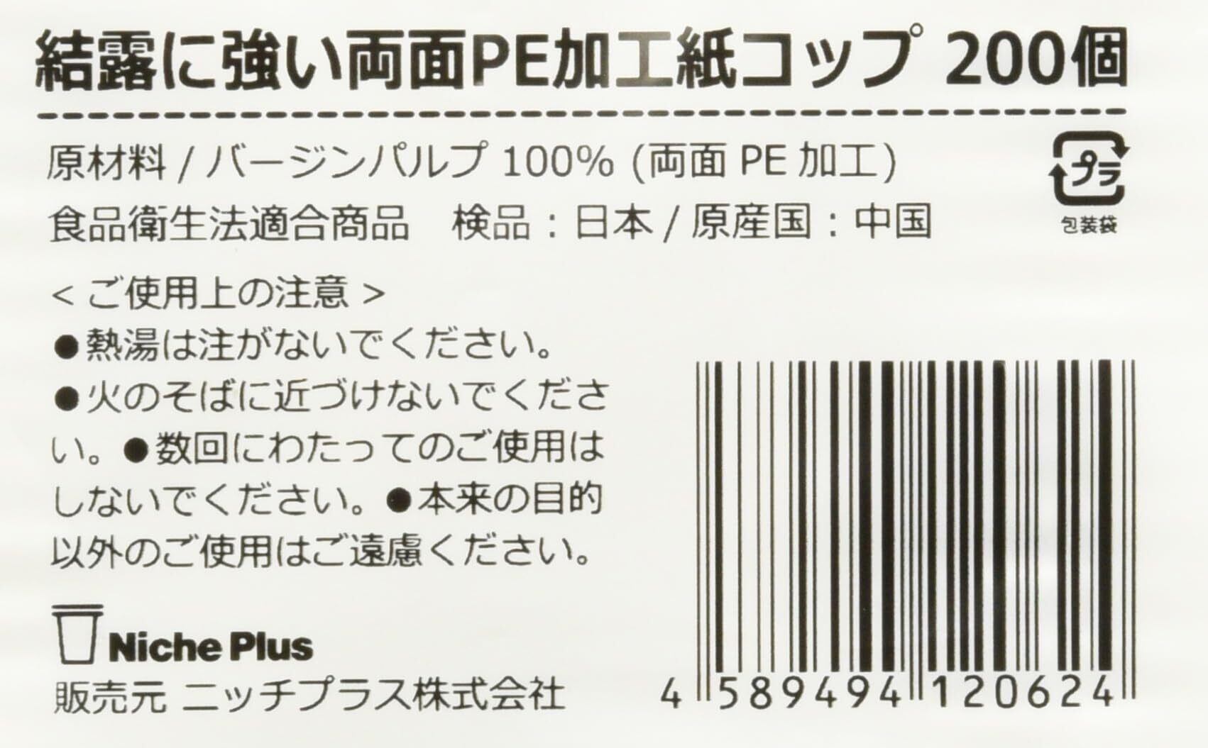 ニッチプラス(Niche plus) 結露に強い両面PE加工 紙コップ ホワイト 7オンス(205ml) 200個入