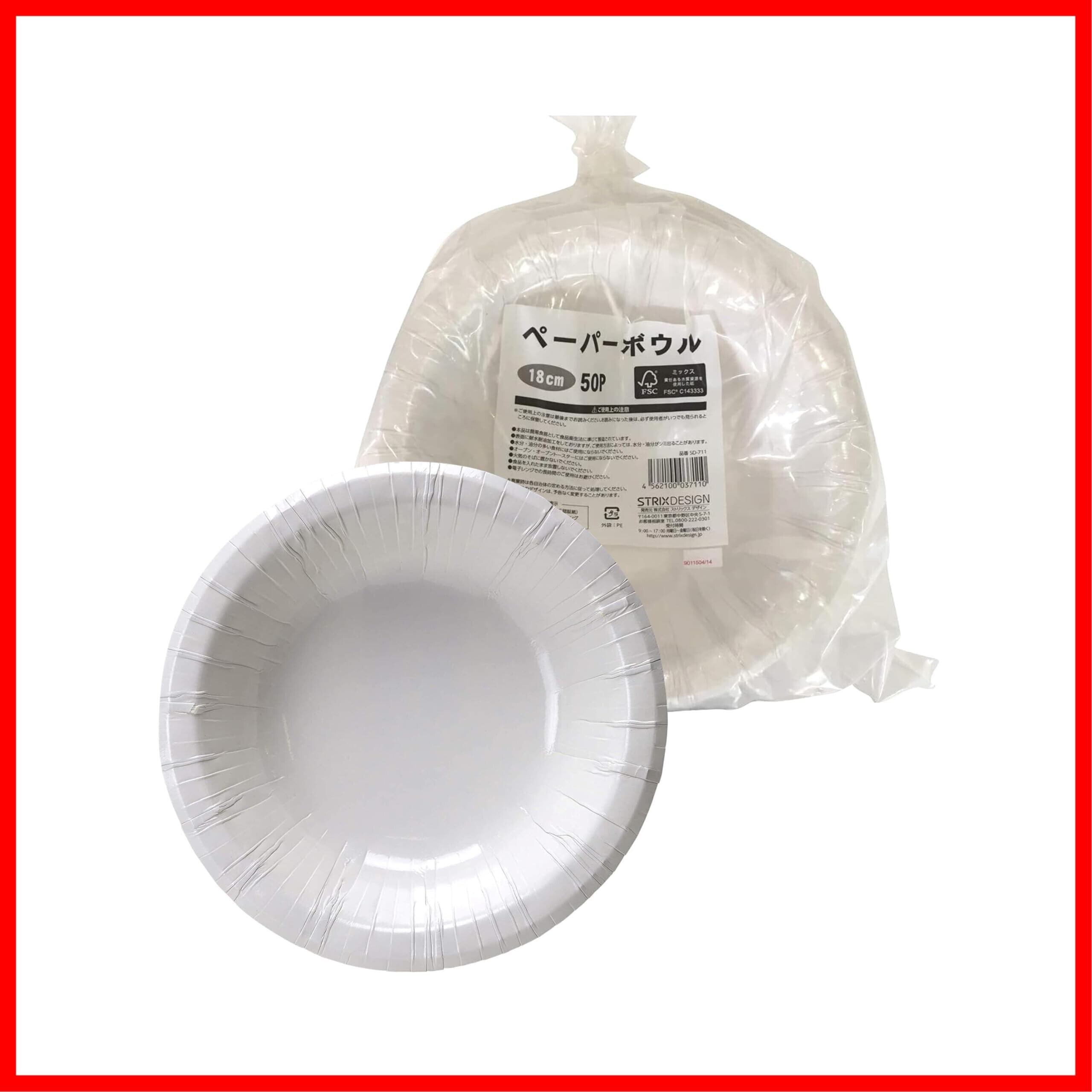 ストリックスデザイン 使い捨て 紙皿 ボウル 深皿 50枚 18cm 白 耐水・耐油加工で染みにくい レンジ対応 業務用 SD-711