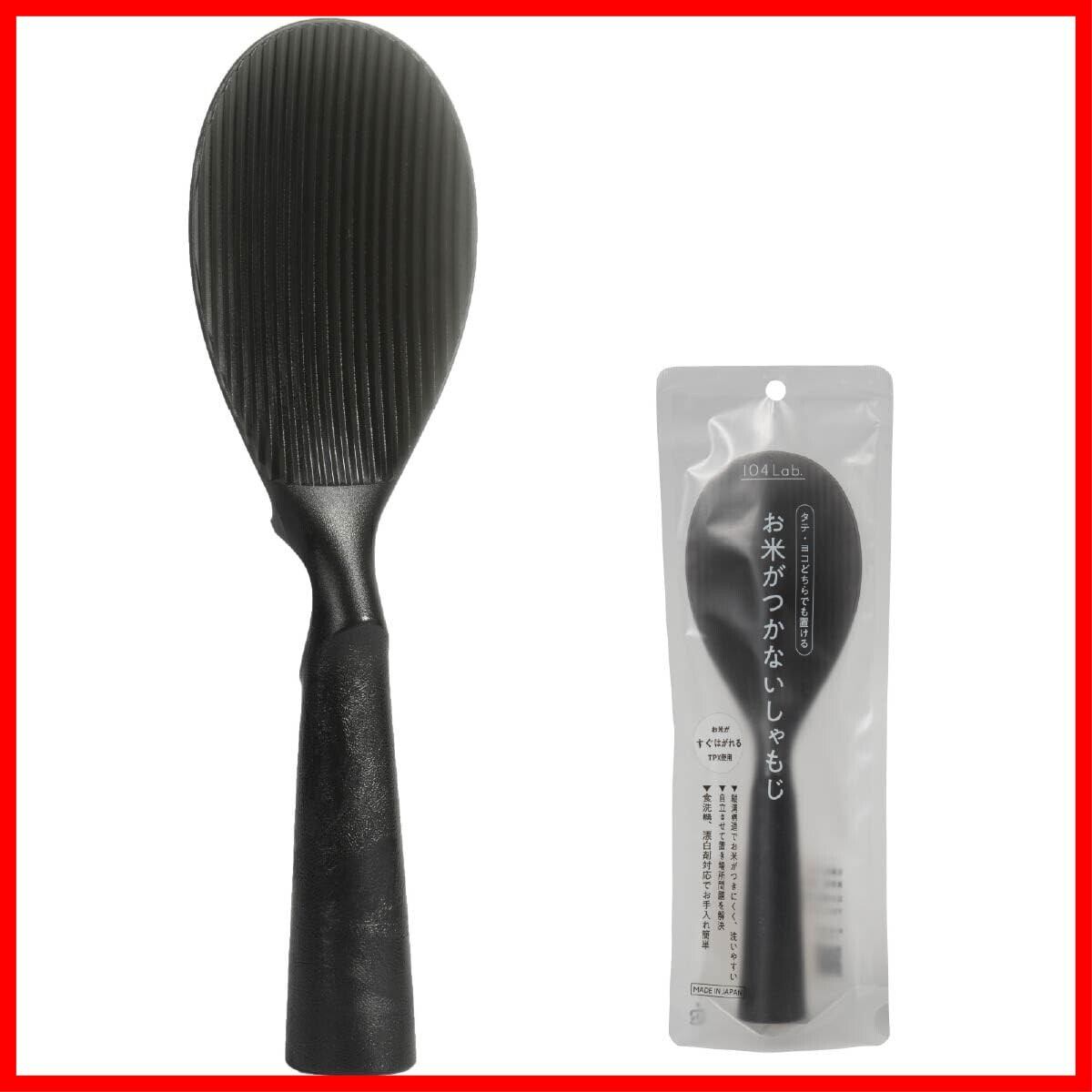 104lab. お米がつかない 立つ しゃもじ くっつかない 日本製 石川県 自社工場で生産 食洗機対応 杓文字 おしゃれ かわいい 杓文字 縦ライン 自立 衛生的 ブラック 黒 お米 炊飯器 お米がこびりつかない 洗いやすい TPX 剥離性 つきにくい プラスチック キッチン ツール 雑貨 リビング 調理器具 21.5x 6.8 cm IJ ジュシラボ 石川樹脂工業