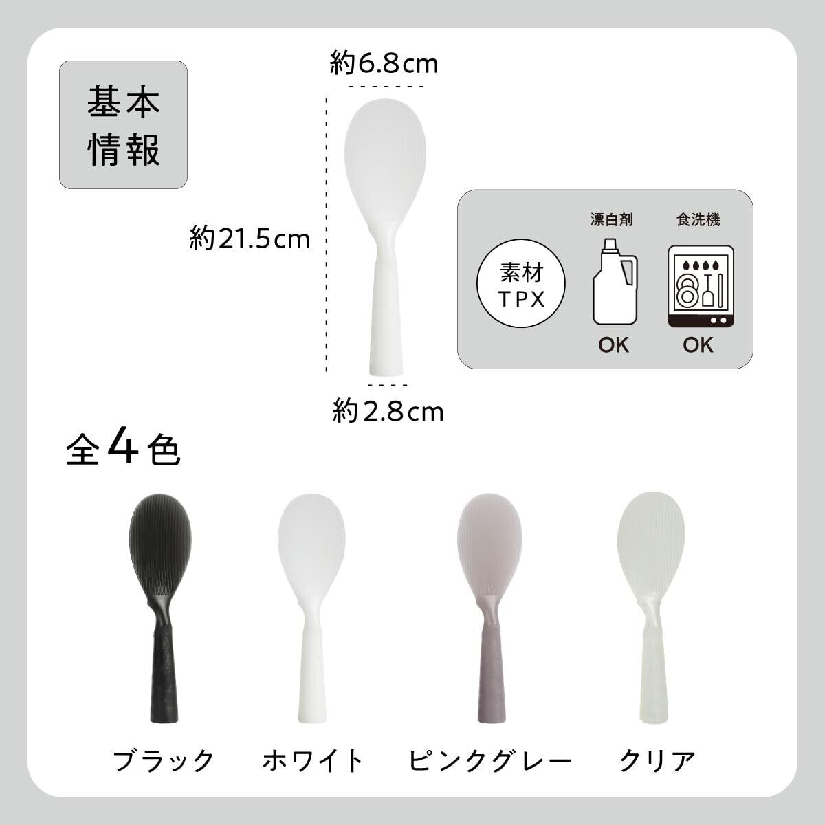 ご飯がこびりつかない素材TPXを使用したしゃもじです。お米をくっつかないで、すくうことができて、さらに陶器のお椀やおかまを傷つけない優しい原料です。日本の工場で作られている、Made in Japan品質が極上の使用感をお届けします。