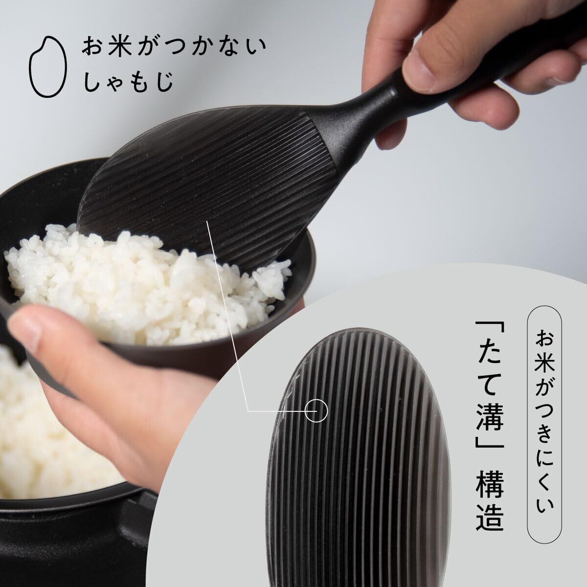 【新着商品】104lab. お米がつかない 立つ しゃもじ くっつかない 日本製 石川県 自社工場で生産 食洗機対応 杓文字 おしゃれ かわいい 杓文字 縦ライン 自立 衛生的 ブラック 黒 お米 炊飯器 お米がこびりつかない 洗いやすい TPX 剥離性 つきにくい プラスチック キッチン ツール 雑貨 リビング 調理器具 21.5x 6.8 cm IJ ジュシラボ 石川樹脂工業 | Cherry Blossoms