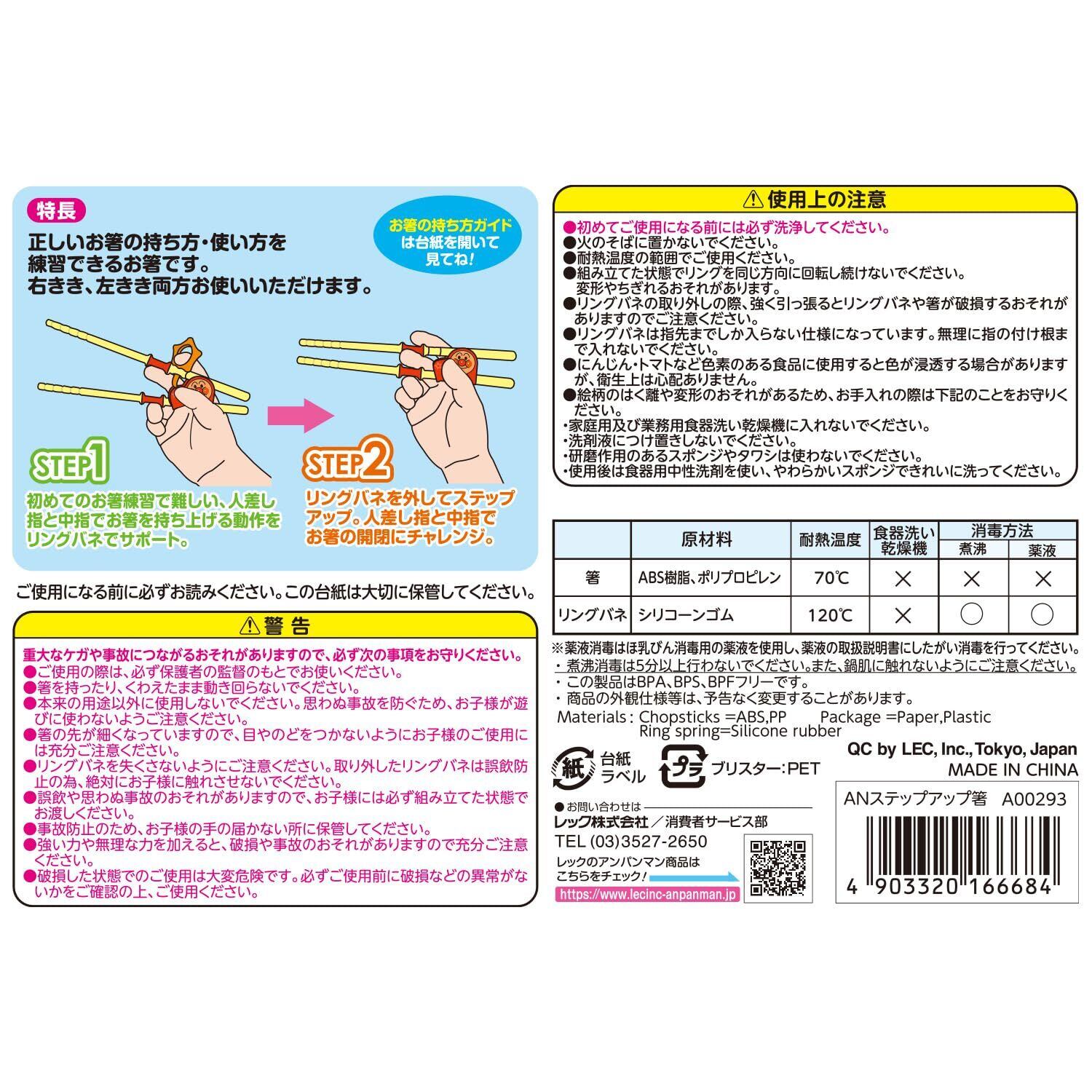 レック アンパンマン ステップアップ箸 ( 右利き 左利き 両用 ) / 2歳頃から / 持ち方覚え箸 /