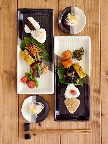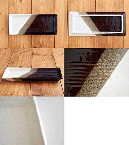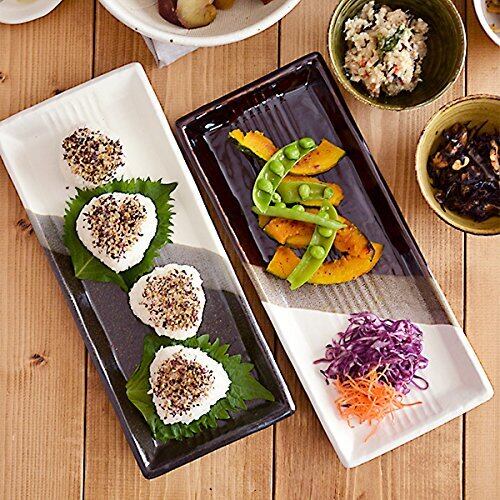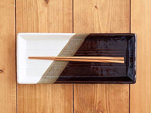 3色に塗り分けられた長角皿は、大人な雰囲気漂う配色。和食だけでなく、洋食を盛り付けてもマッチしそうなモダンなイメージを与えてくれそうです。
