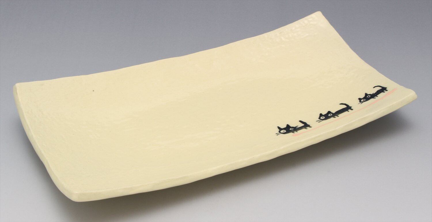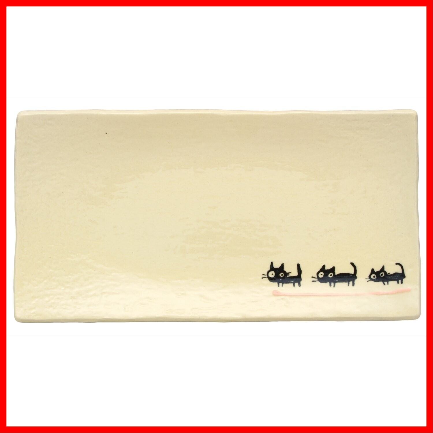 窯元SOUSEN 長皿 ピンク 24cm 瀬戸焼 長角皿 中 黒ネコ柄