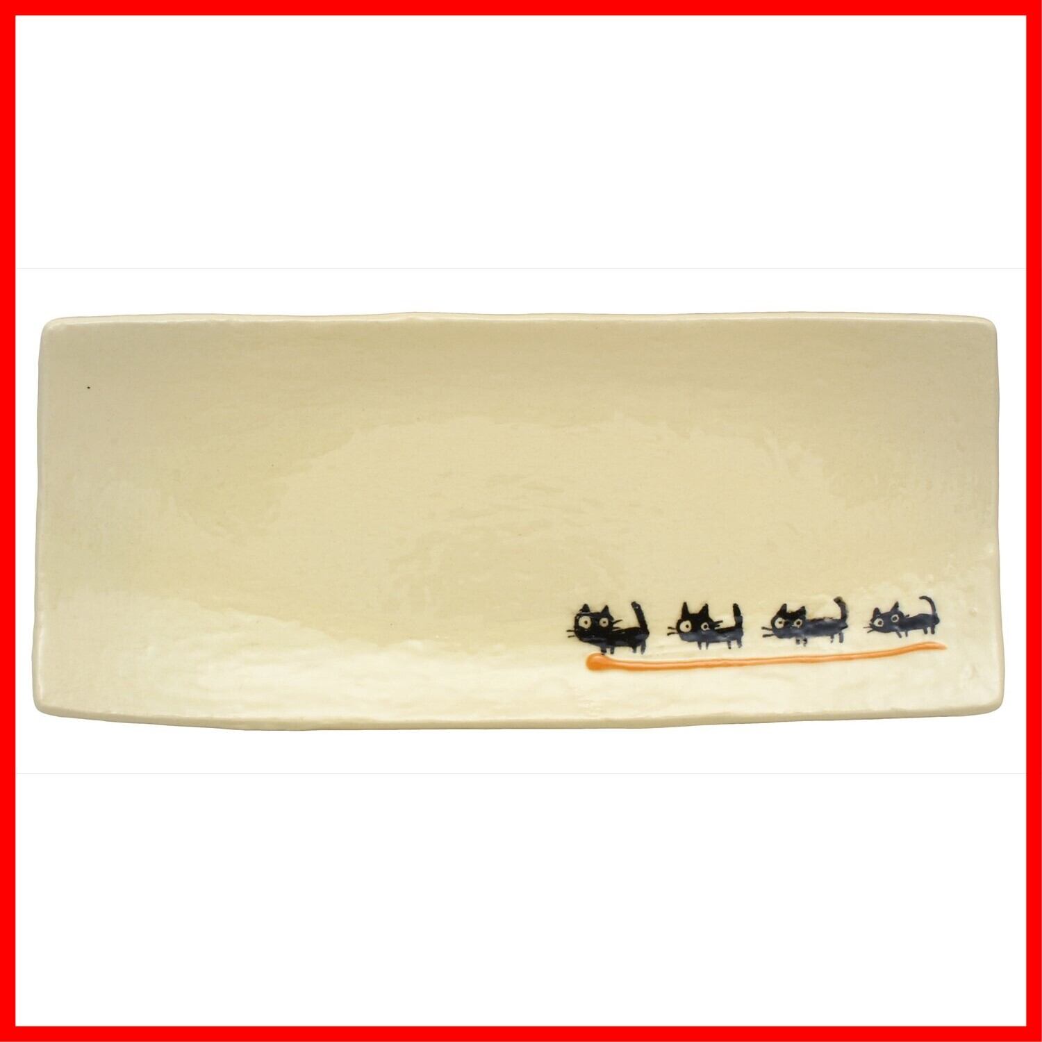 窯元SOUSEN 長皿 オレンジ 27cm 瀬戸焼 長角皿 大 黒ネコ柄