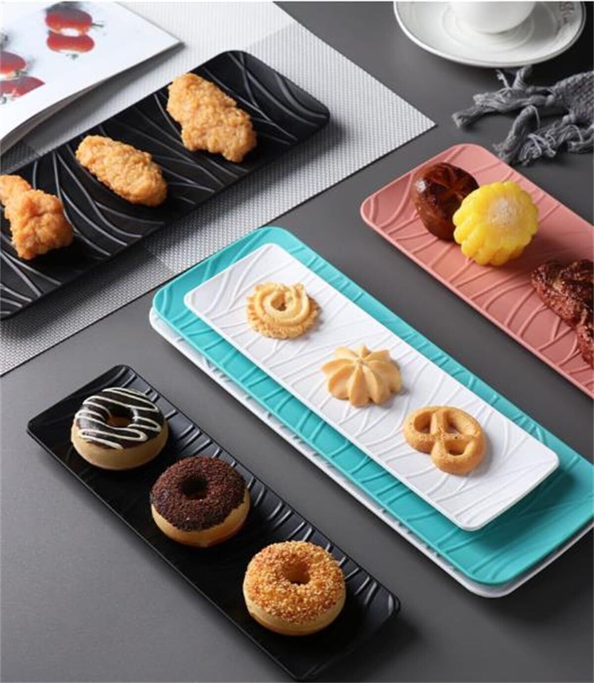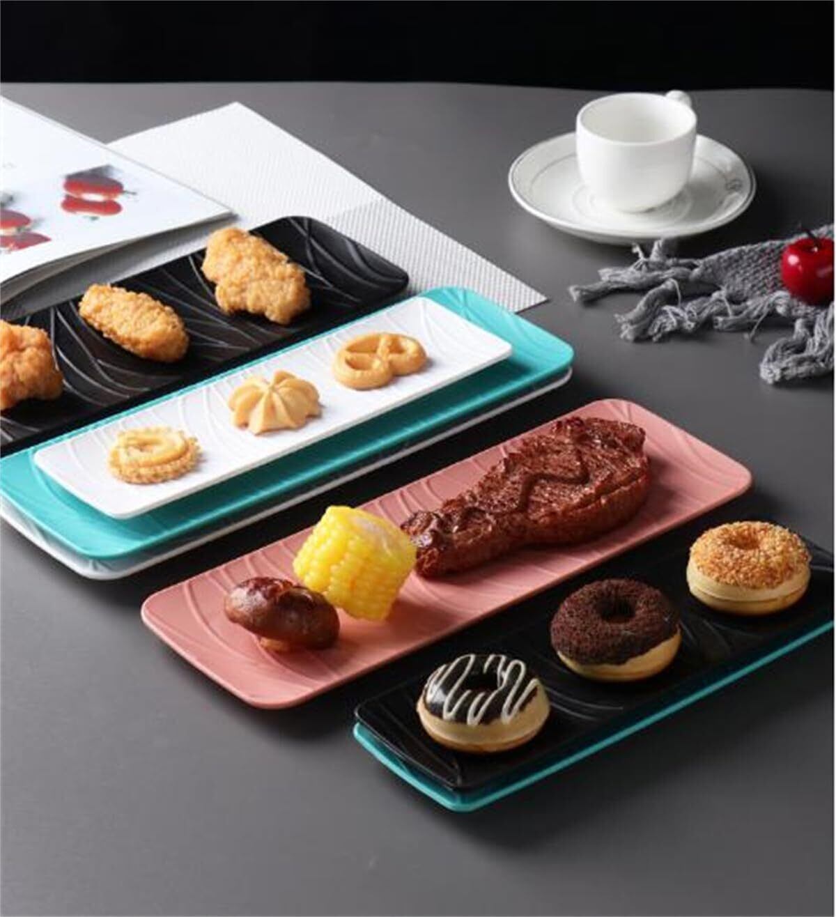 人間工学に基づいて作られたこの長角皿は、奥行きが細めにデザインし、傾けてもこぼれないようになってます。
