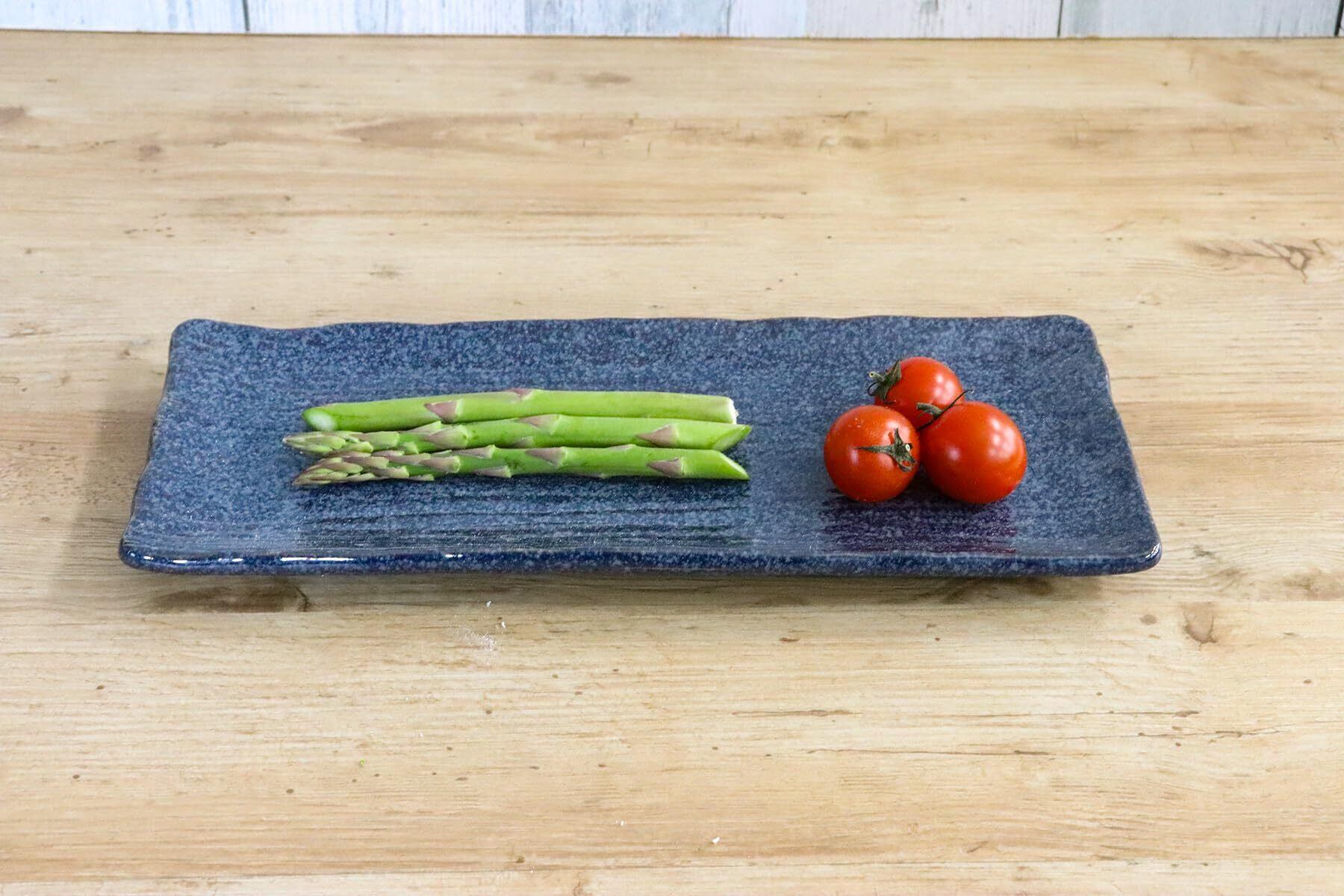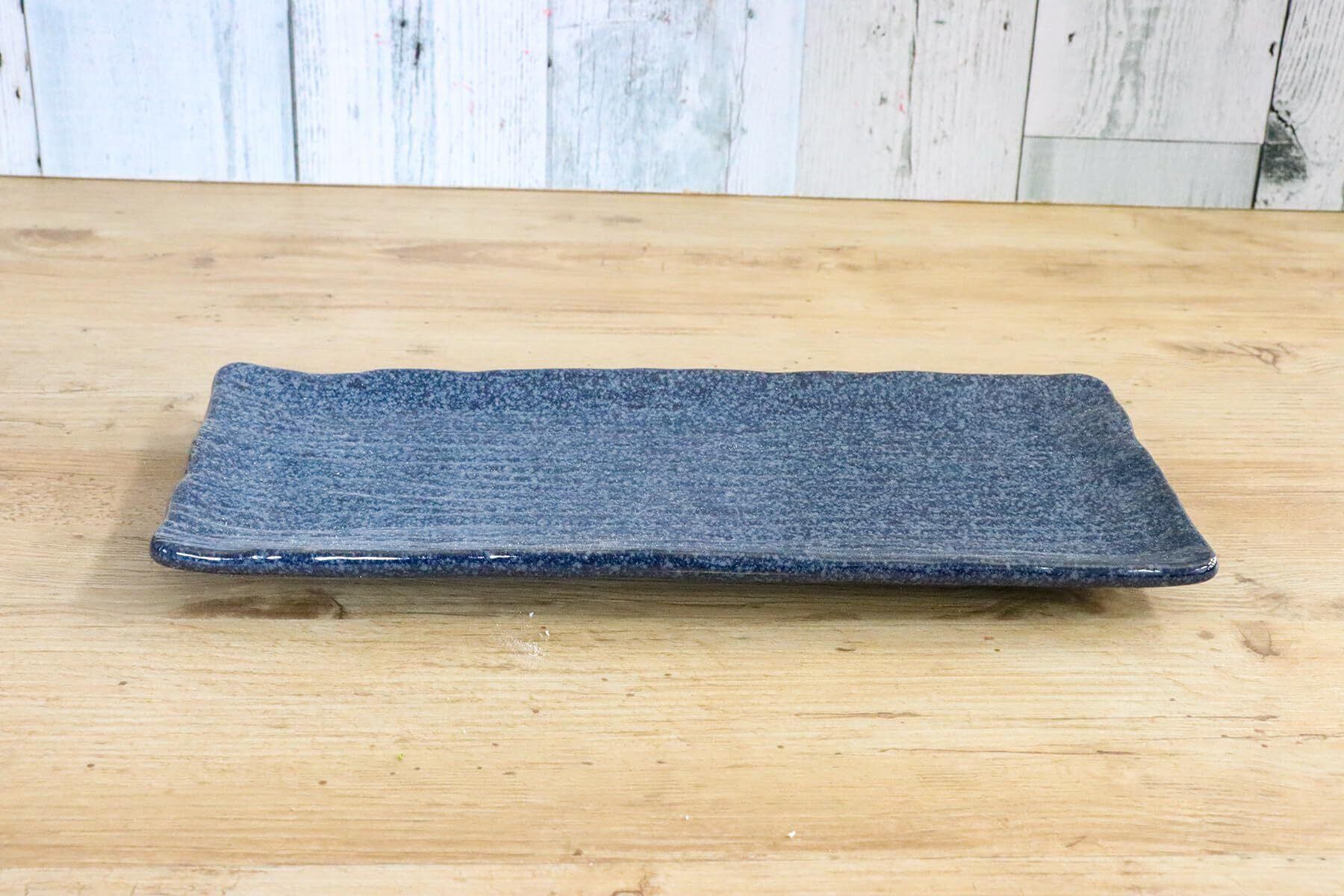 美濃焼 和風カフェシリーズ 笹川流れ水切浜 長角皿 藍の雪 1点(サイズ:H2×W29×D12cm)