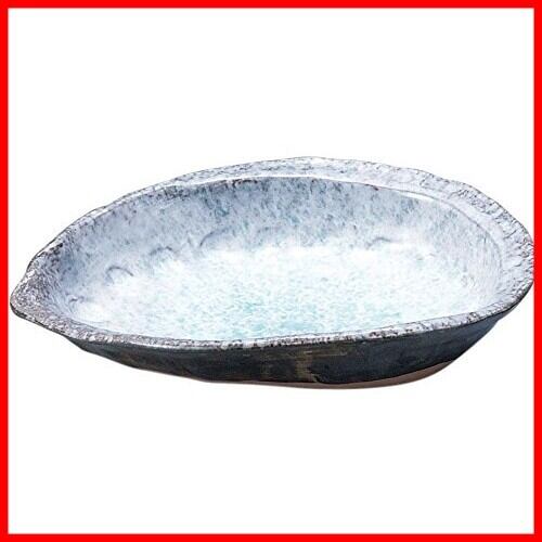 萬古焼 青りーぶ アワビ鉢 中 ボウル 皿 直径約17cm 電子レンジ 食洗機対応 日本製 10443