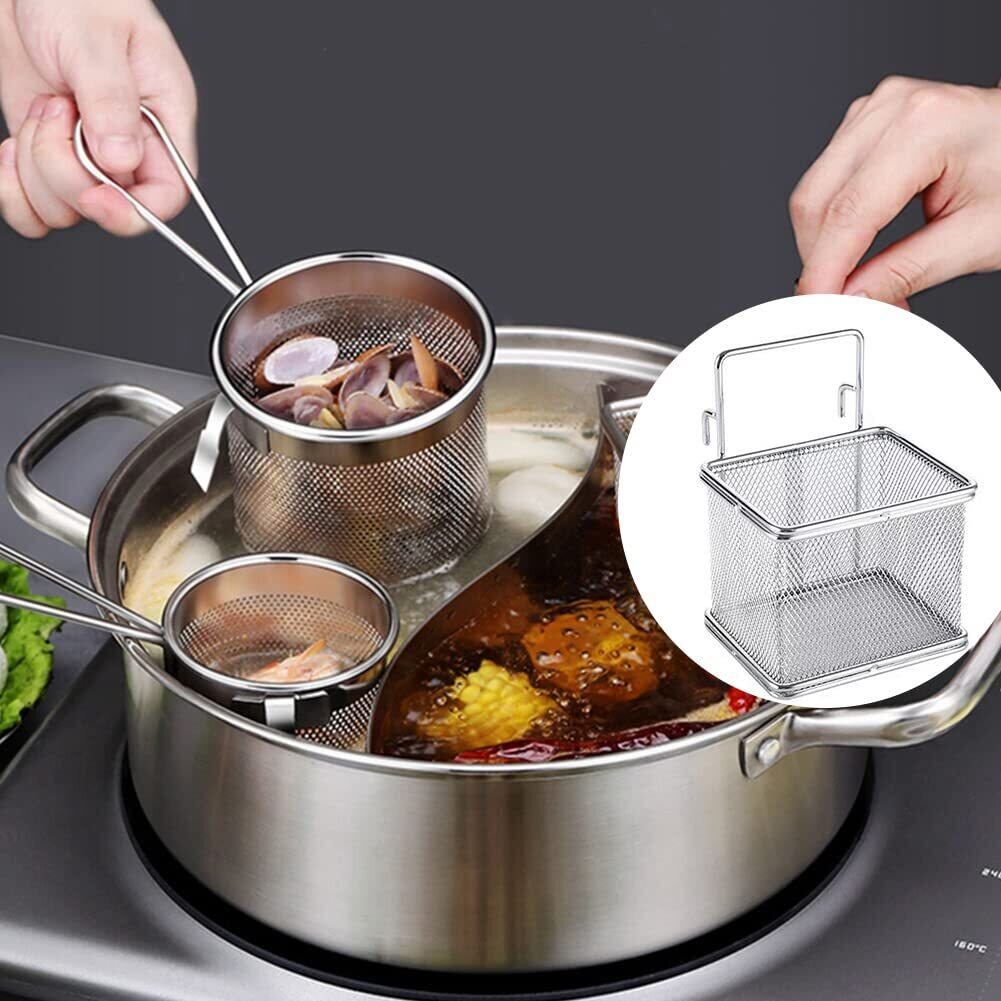 VENOAL フック付きステンレス製ザル 麺水切りフィルター メッシュザル ストレーナー フライドポテトパスタ用スプーン