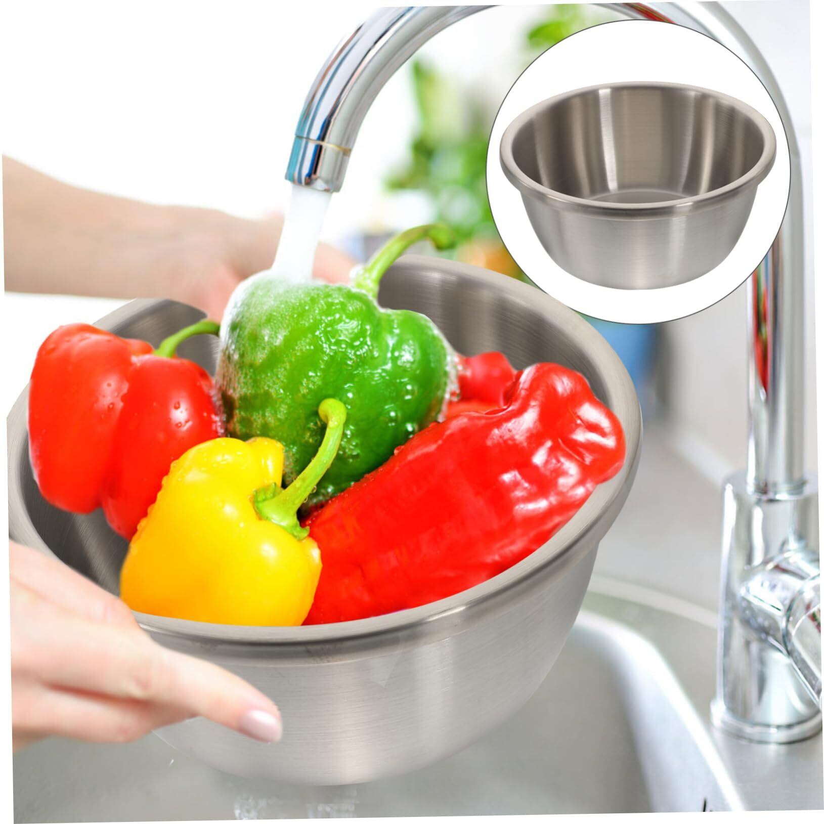 ステンレス製洗面器米、果物、野菜を洗うのに適しています。ミキシングボウルこれは果物と野菜の洗浄ボウルで、ステンレススチール素材で作られており、厚くて深く、お手入れが簡単です。金属ボウルは、生地をこねたり、ミルク泡立て器を作ったりするのに最適なツールでもあります。