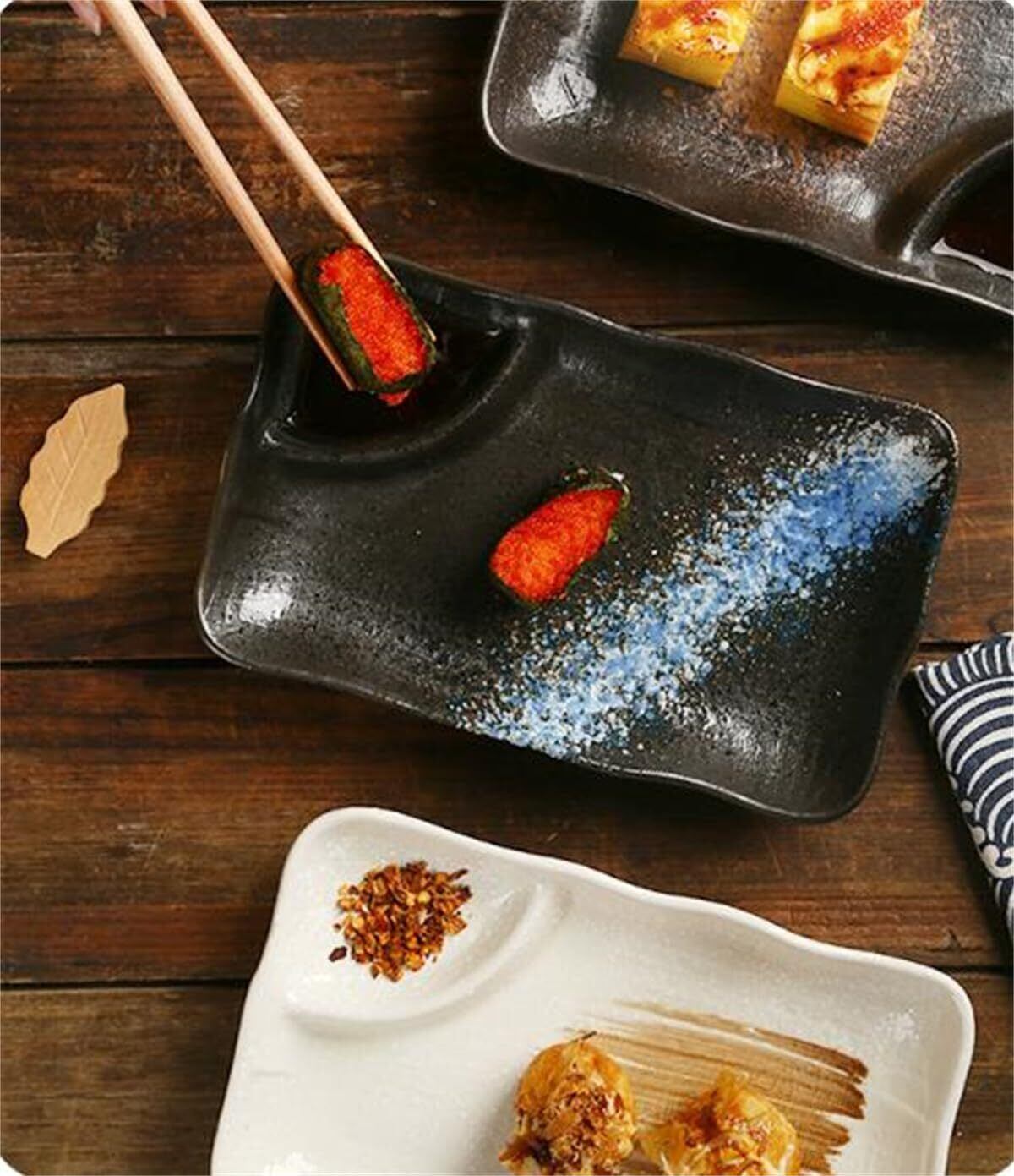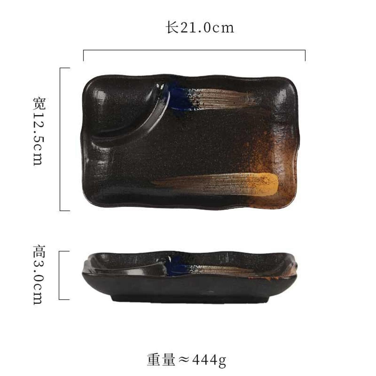 長角皿 陶器 21*12.5*3cm 焼き物皿 魚 仕切り 皿 刺身皿 お皿セット おしゃれ 焼き魚皿 寿司皿 長皿 長方形 プレート 食器 電子レンジ対応 (ブラウン, 仕切り 21*12.5*3cm)