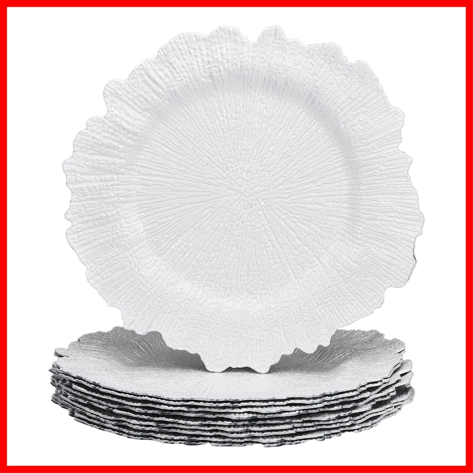 uxcell 10個セットのリーフチャー ジャープレート 13"のプラスチック製フローラルチャー ジャープレート ディナーウェディングパーティーイベントテーブルセッティング装飾用のラウンドプレートチャー ジャー ホワイト