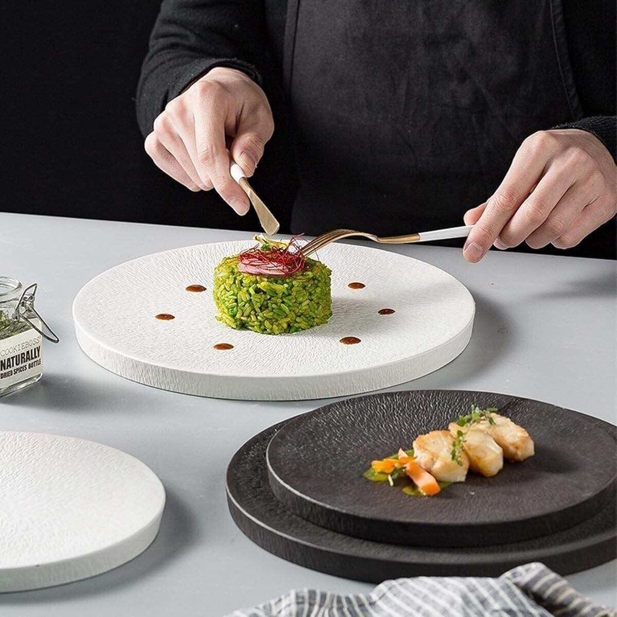 食卓を一瞬でアート展に変身させたい?クリエイティブなヨーロピアンスタイルのディナープレートがお手伝いします!厳選された高品質の磁器土、1300℃の高温焼成+釉下彩技術、安全、耐久性、質感。シンプルなプレートの表面は、ユニークな質感、黒と白のデュアルカラーは、様々な料理に適しています。繊細なフレンチプレートでも、家庭料理をグレードアップさせるプレートでも、料理をのせた瞬間、おいしい料理に芸術のコートをかけたような気分になります。ゲストをもてなすときでも、自分へのご褒美でも、シンプルでありながら高級感のあるデザインは、すべての食事を目と舌のごちそうに変え、食事の質を急上昇させます!