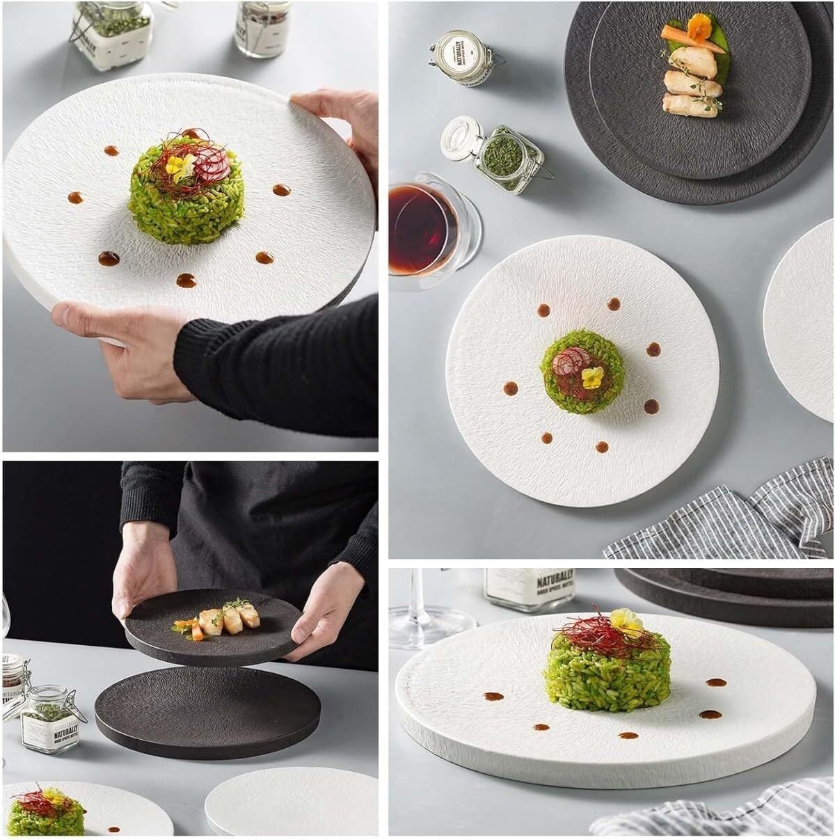 デザインスタイル:白と黒を基調としたシンプルなプレート、食事の質を高め、高級料理でも家庭料理でも、料理を乗せれば芸術の器に変身する。