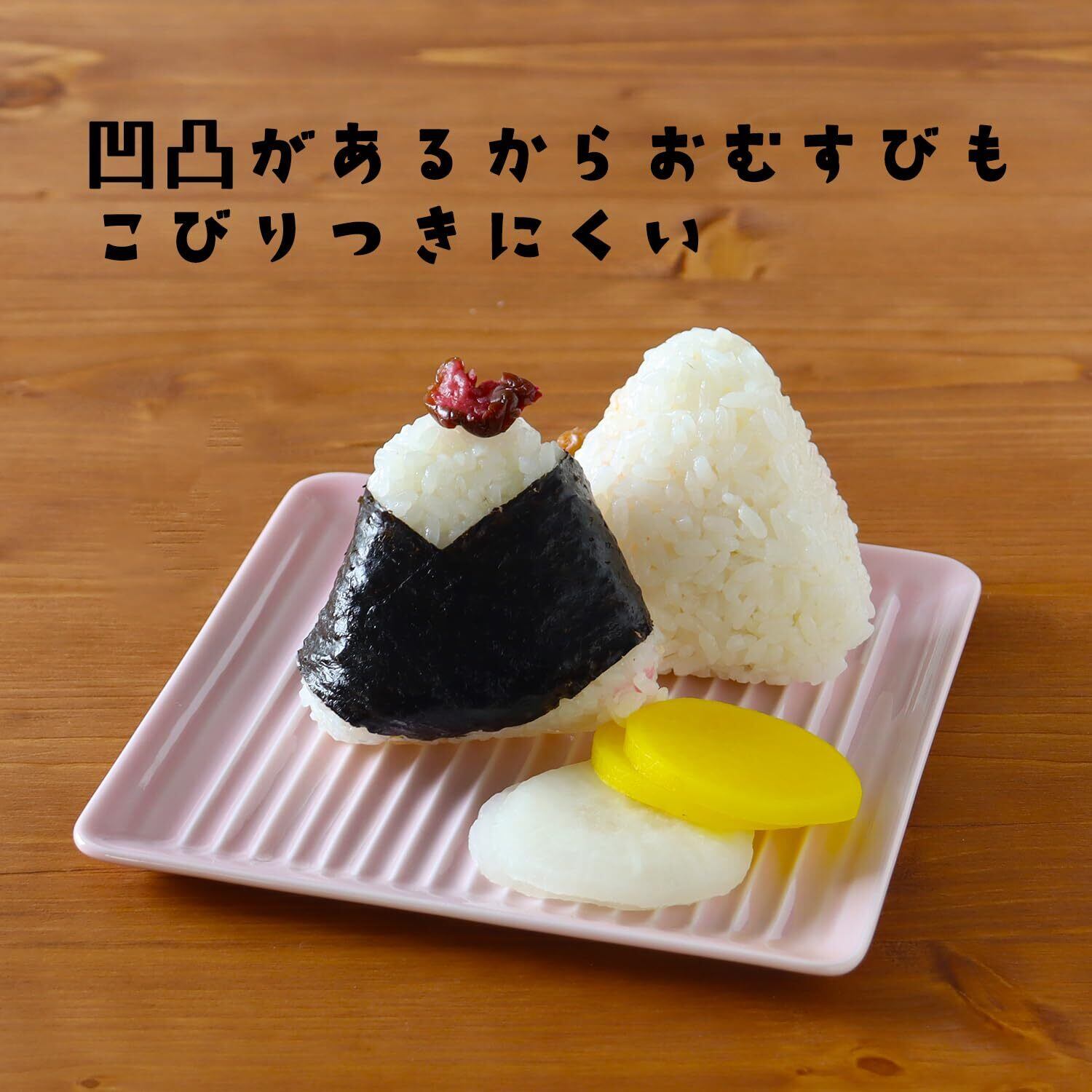 【幅広い用途で使用可能】トースト・揚げ物・サラダ・フルーツなど、幅広い用途で使用できます。また、おむすびがこびりつきにくい波型で、油や汁・水切りがいいのも特徴です。