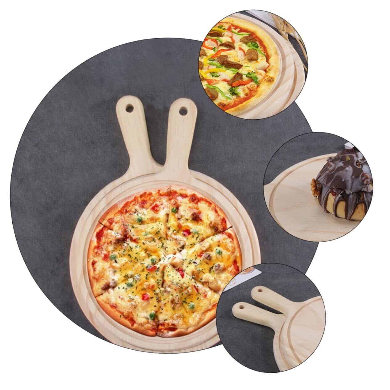 GRIRIW エレガントな9インチピザトレイ木製サービングプレート、西洋料理用、家庭用食品保存トレイ、キッチン装飾