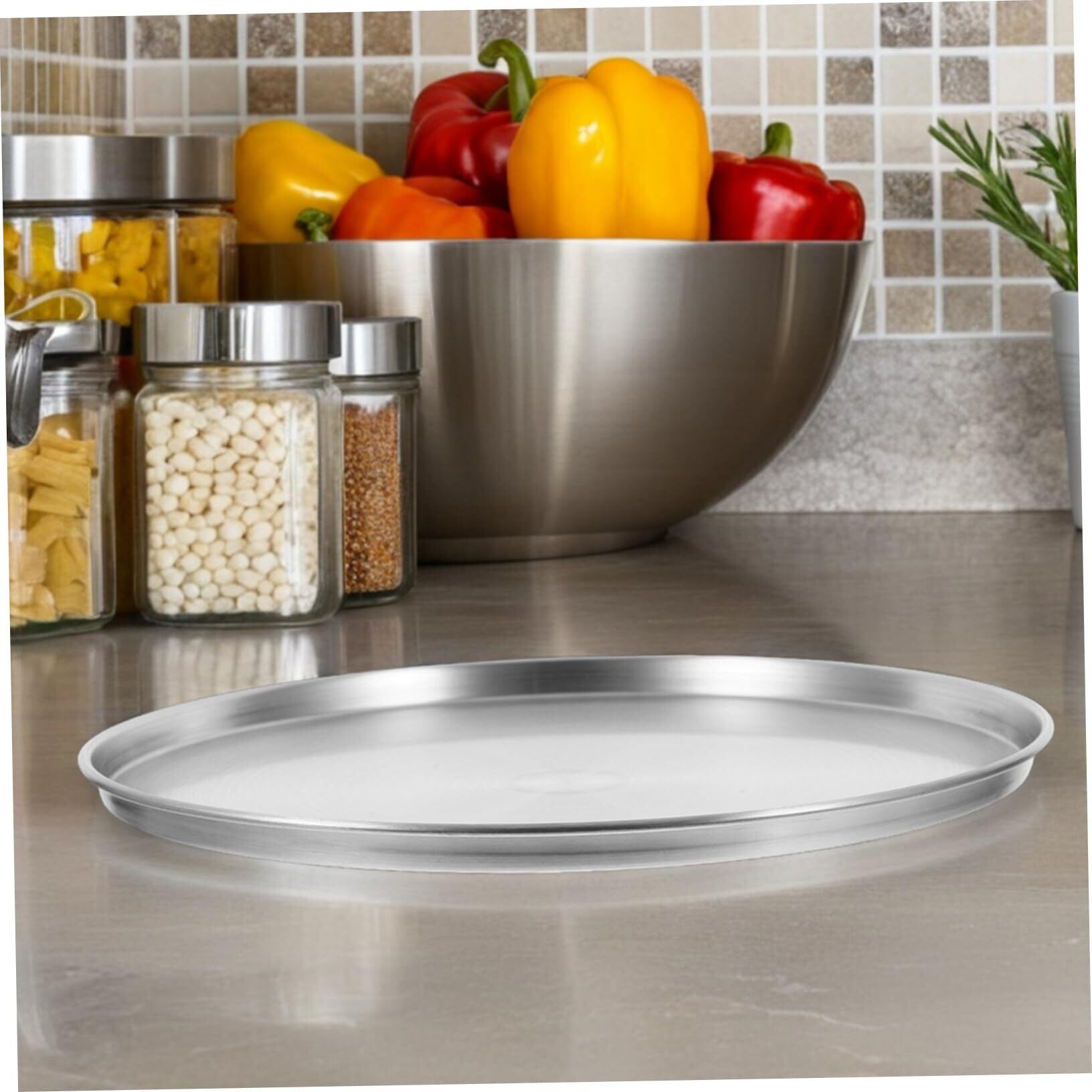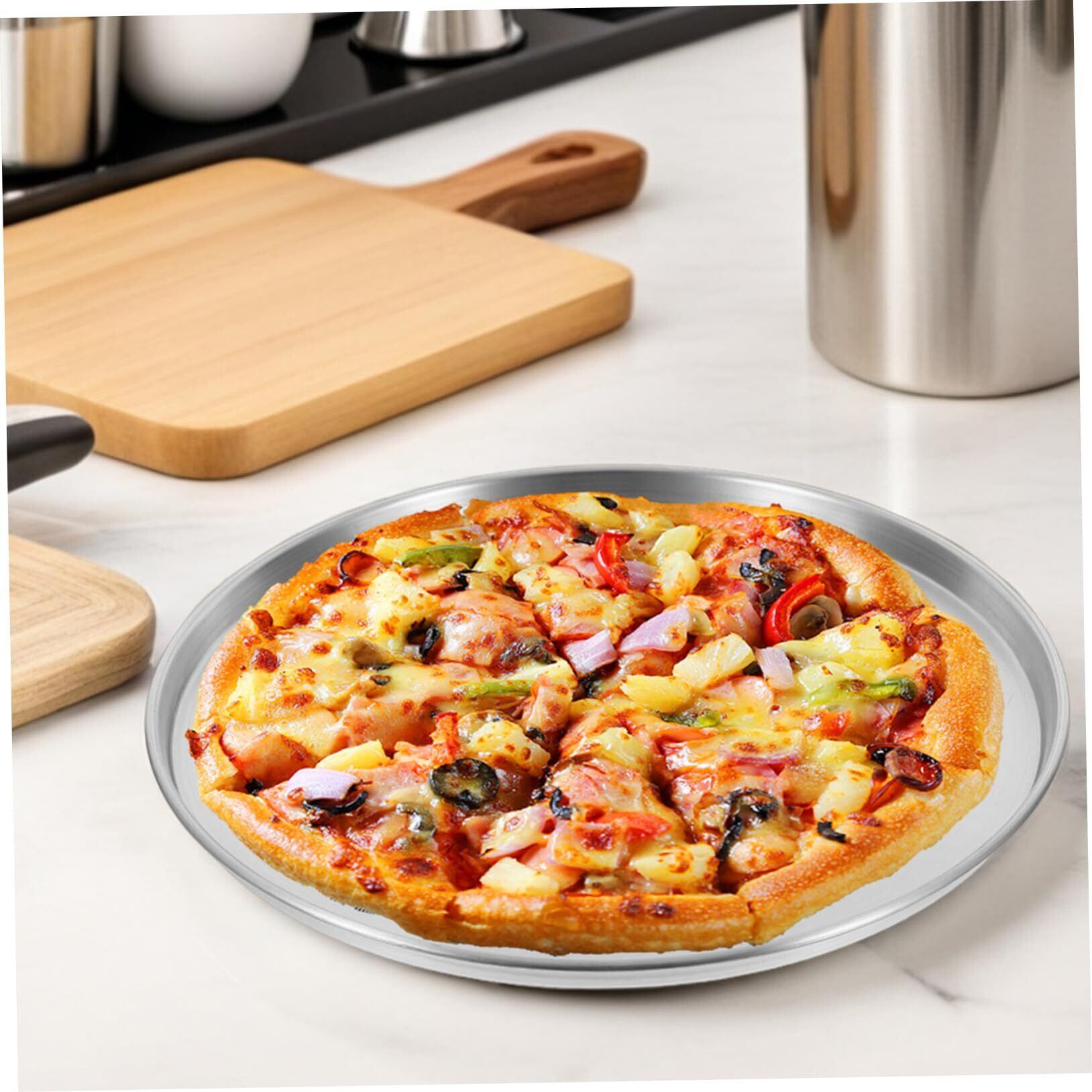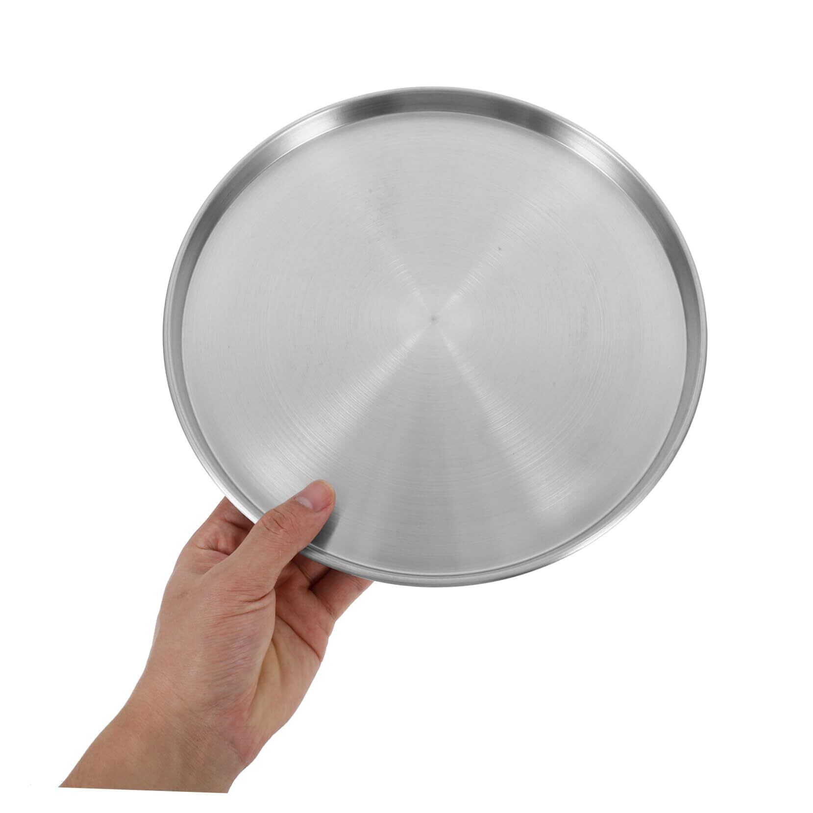 STOBAZA ステンレスピザパン フルーツディナープレート オーブン用ピザパン パン屋さんのベーキングトレイ ステンレス製スナックトレイ ピザ調理鍋 金属丸皿 丸パン ステンレス鋼 Silver