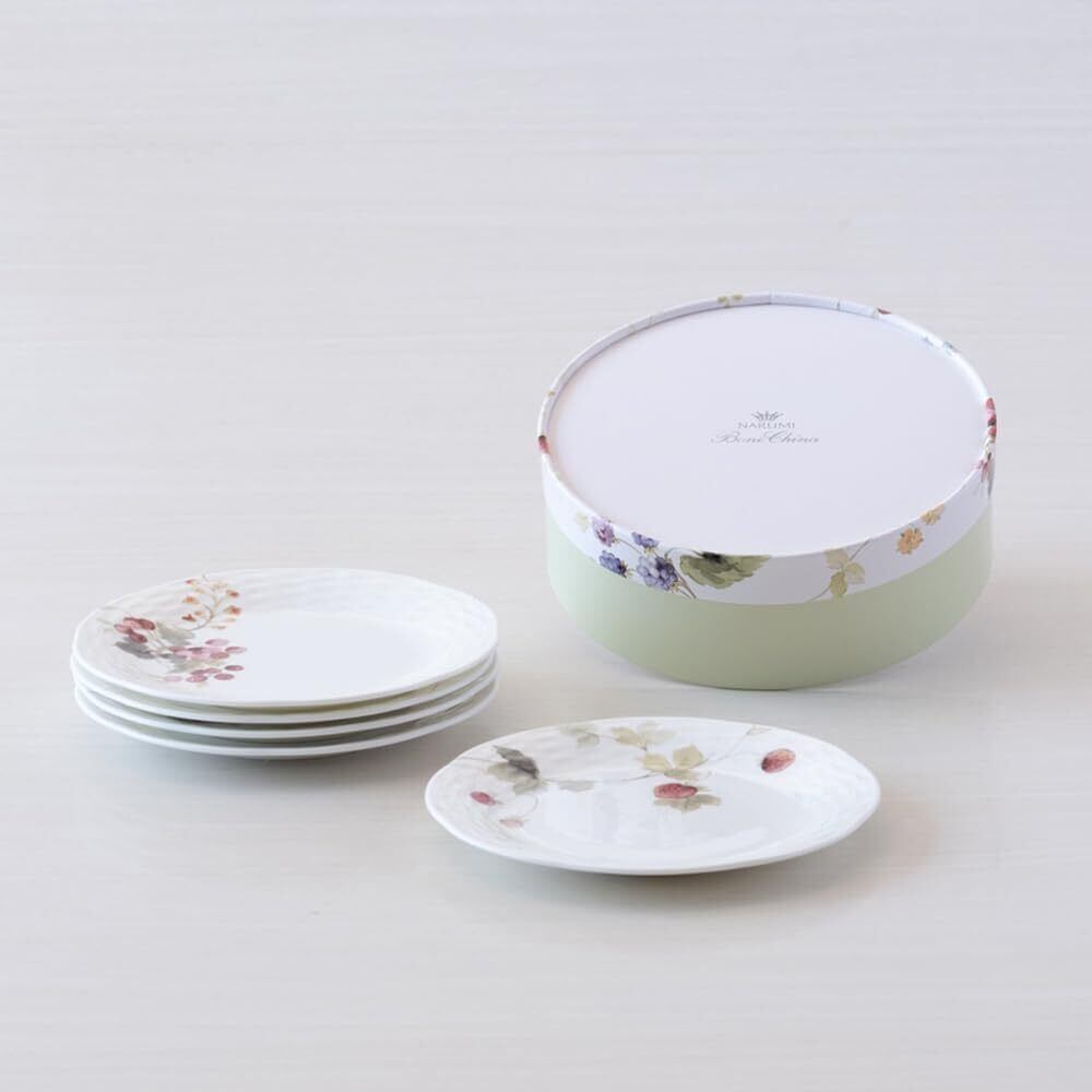 パンやデザートを取り分けるのにちょうどよいプレートのアソート。5枚がきちんと収まる同じデザインの化粧箱入りで贈り物に最適です。