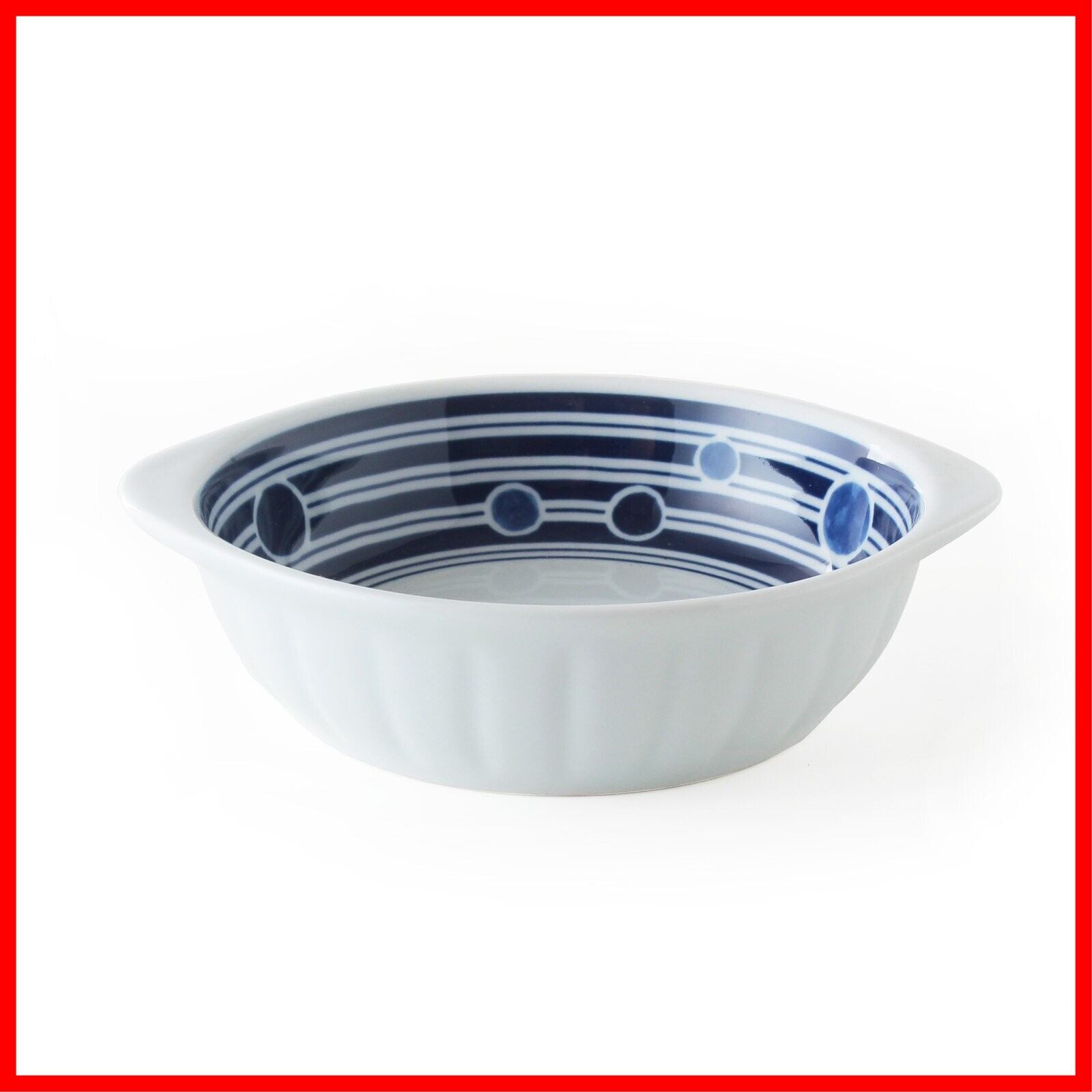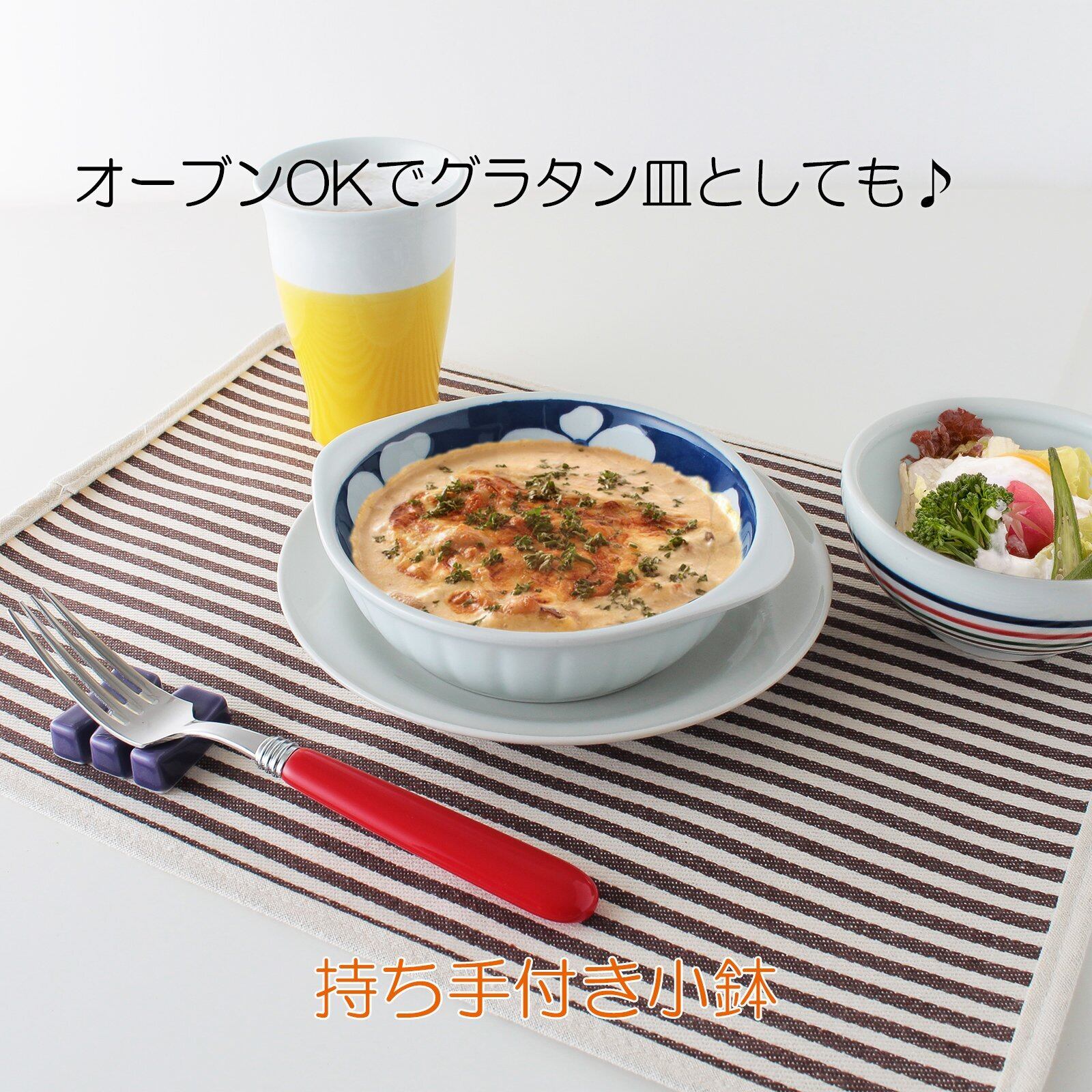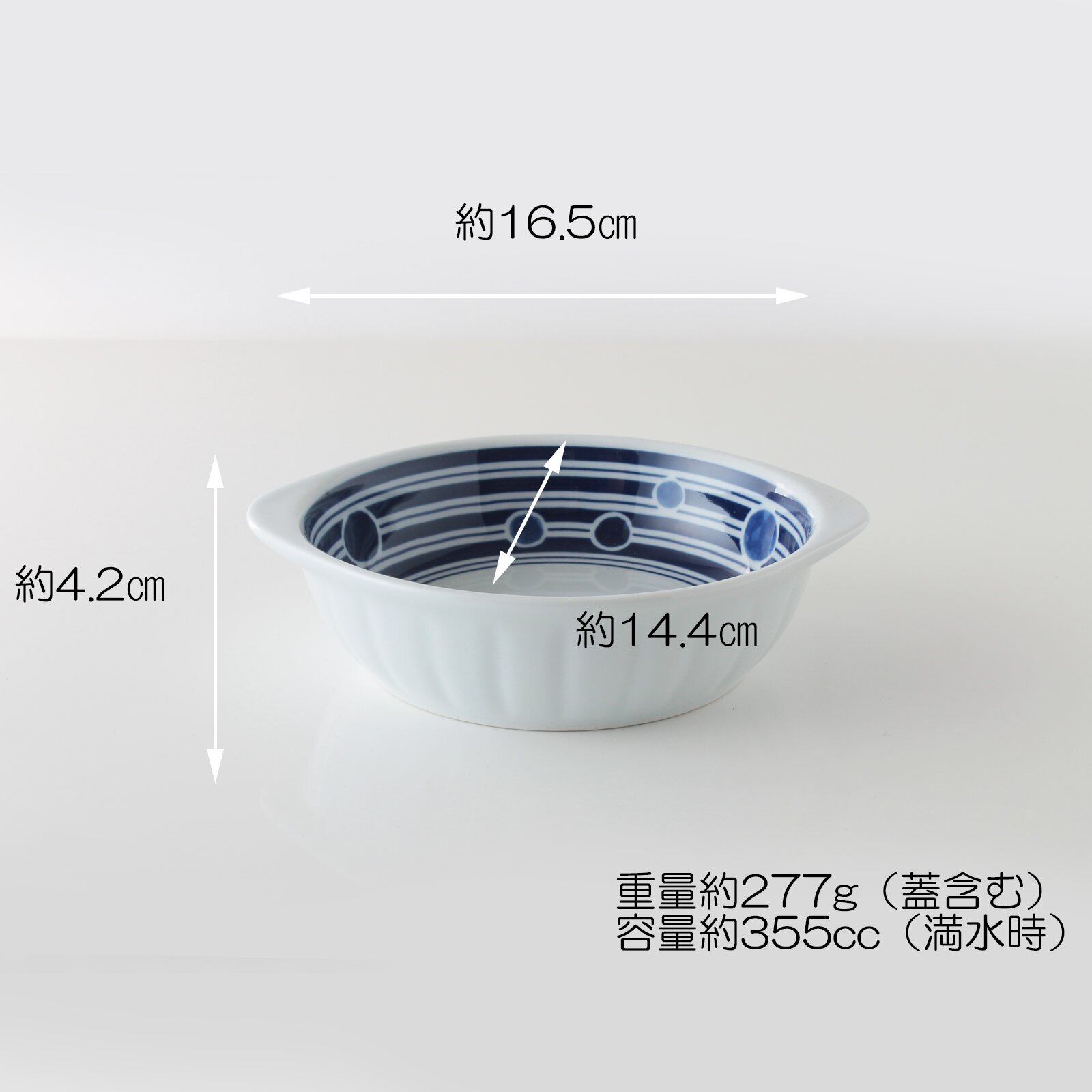 波佐見焼 グラタン皿 / 持ちて付き 小鉢 ドットボーダー 約W 17cm xD 14cm xH 4.2cm 355cc