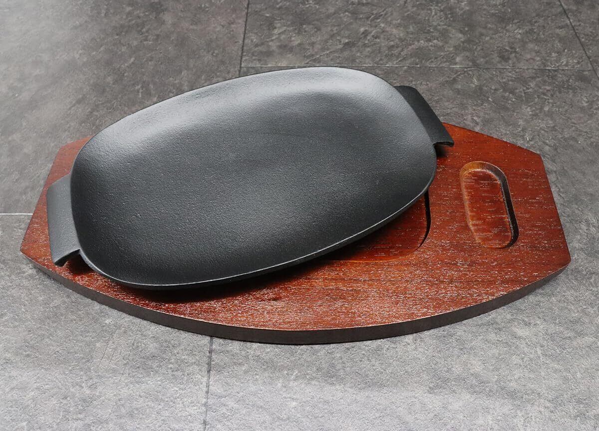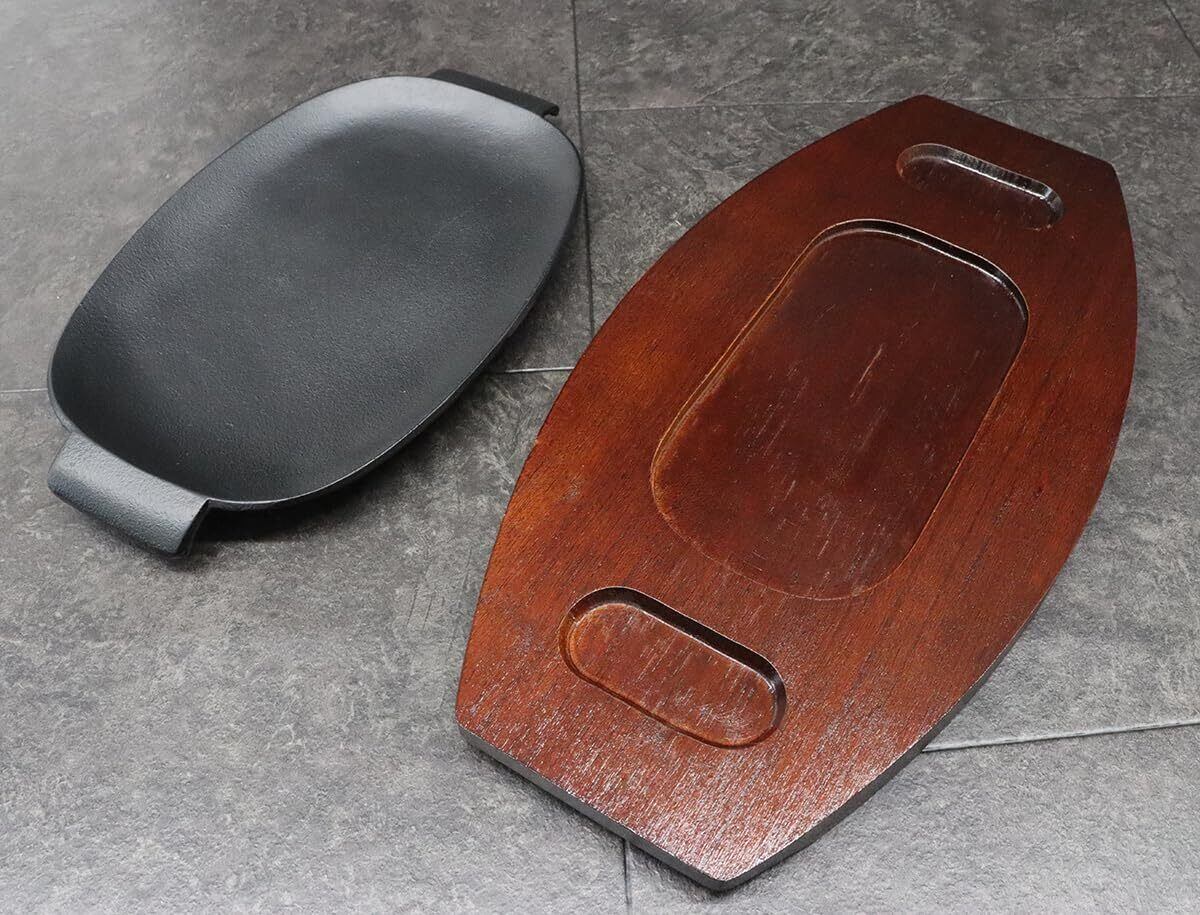 サイズ:鉄皿 外255×150、内210×140×17(深)mm 木台 330×174mm