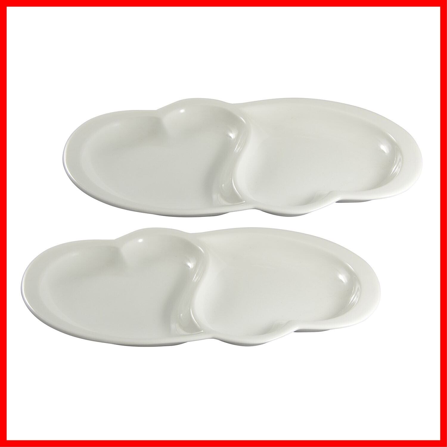 有田焼 ハートの 仕切り皿 2枚セット 白 ID-60-01-1