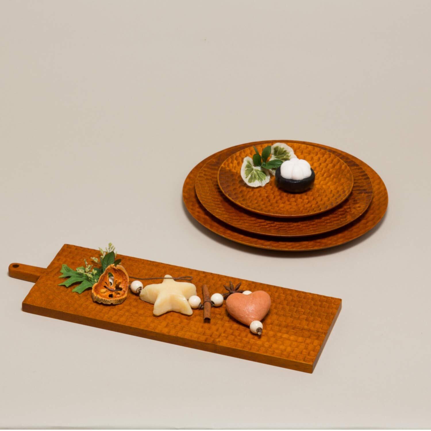【特価セール】スワンソン商事 プレート 丸 S 木製 DDプレート ライトブラウン 約直径20×高さ2cm 業務用 サービング ボード 蜂の巣彫り TH801-20 | Cherry Blossoms