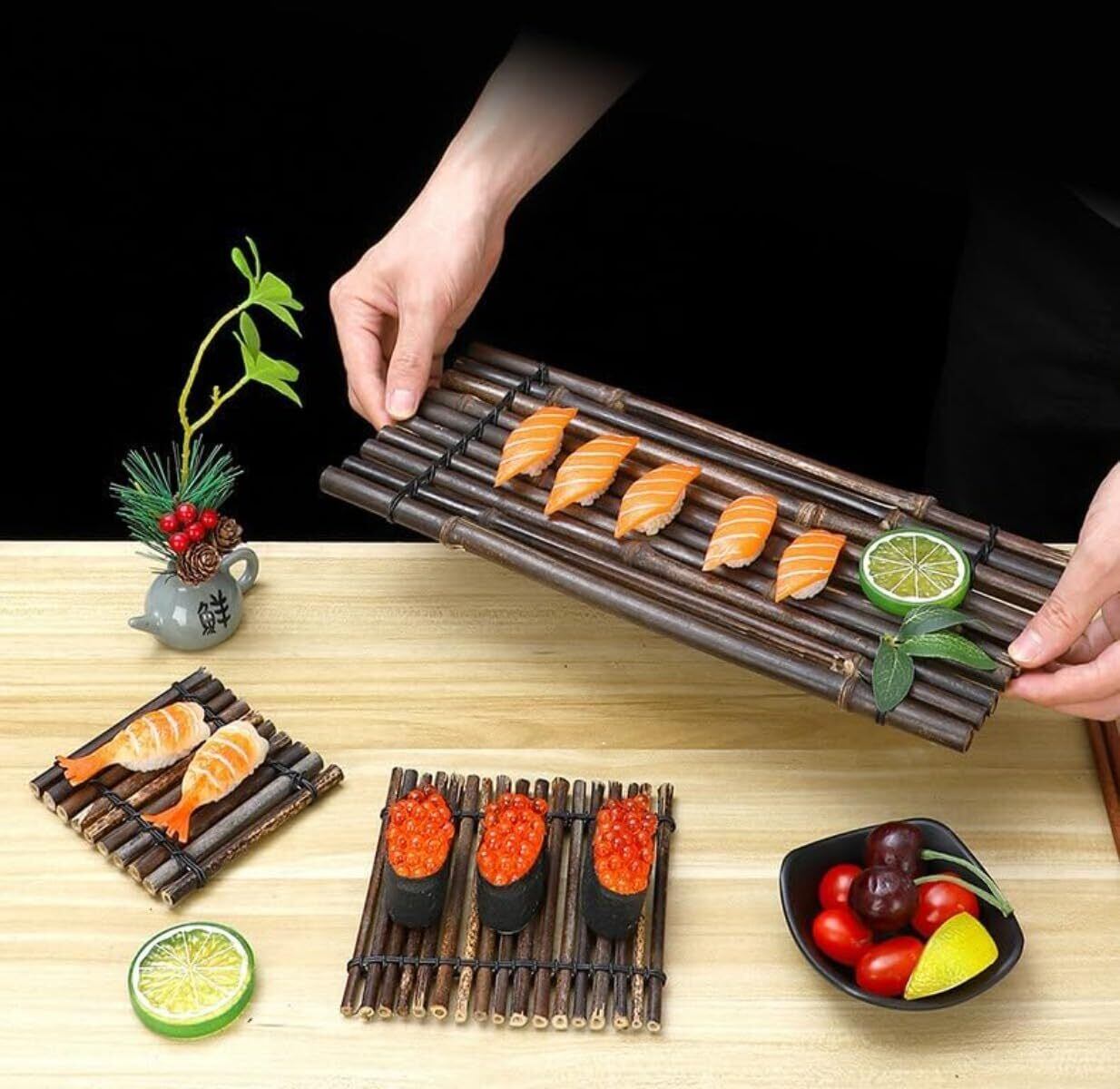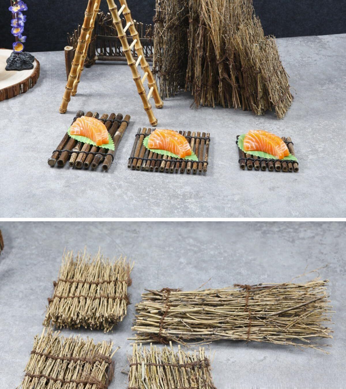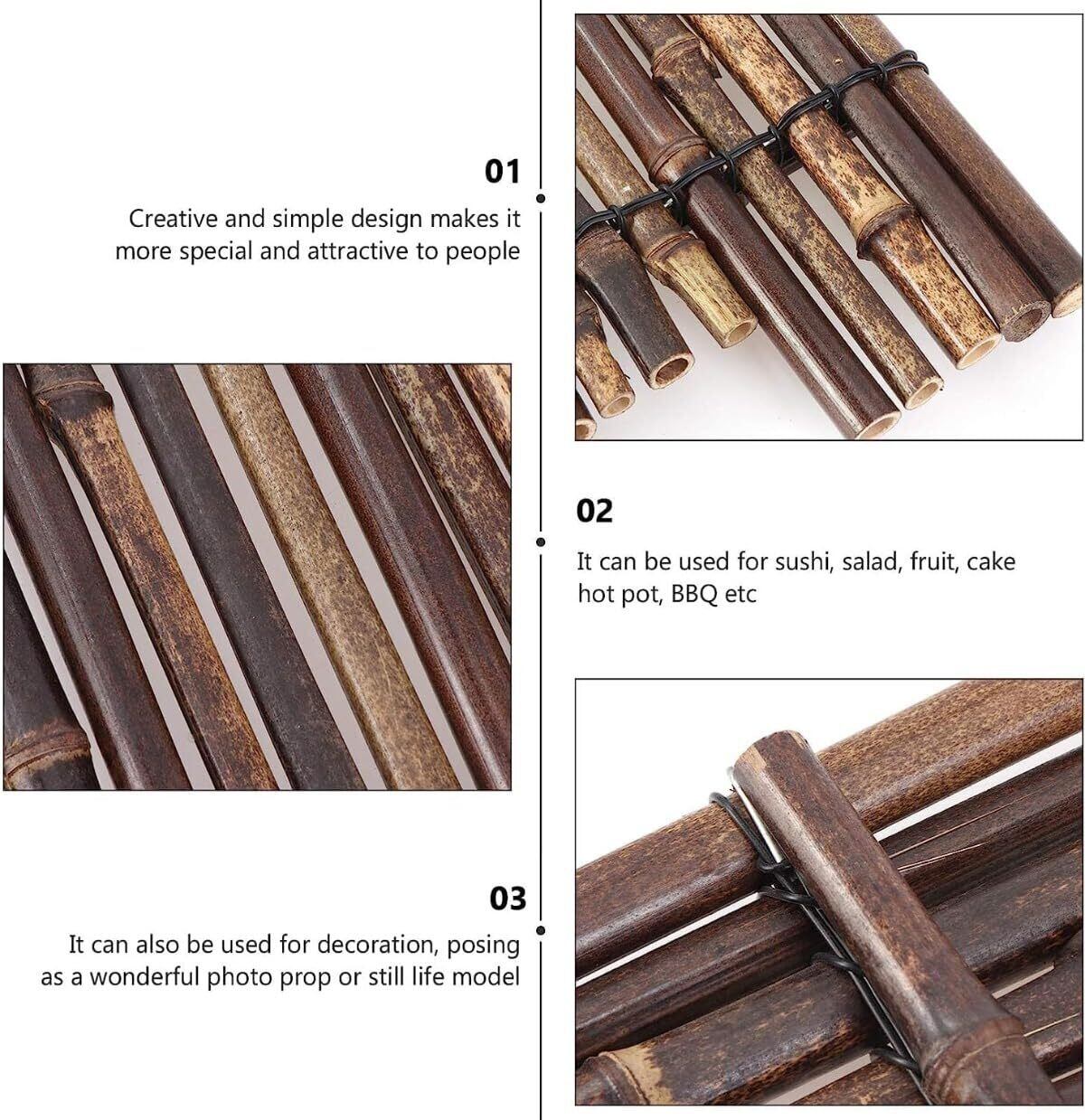 Conutoo 刺身 盛り付け お皿 3個 ミニ フェンス 笹すだれ 竹 飾り 寿司マット寿司マット日本の刺身サービングプレート装飾ミニフェンス寿司キッチンのためのプレート装飾装飾寿司バーレストランのデスクトップ装飾 レストラン 飾りお寿司 和風 パーティー (13*13cm,紫竹の列)