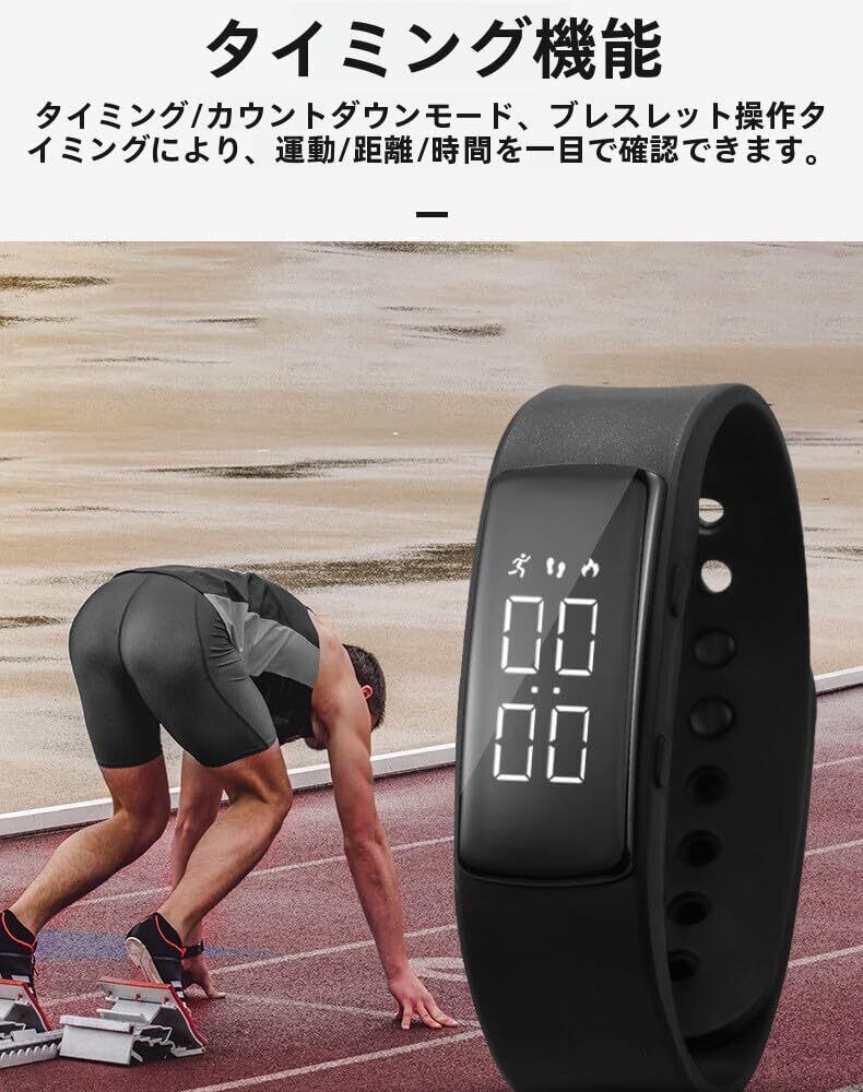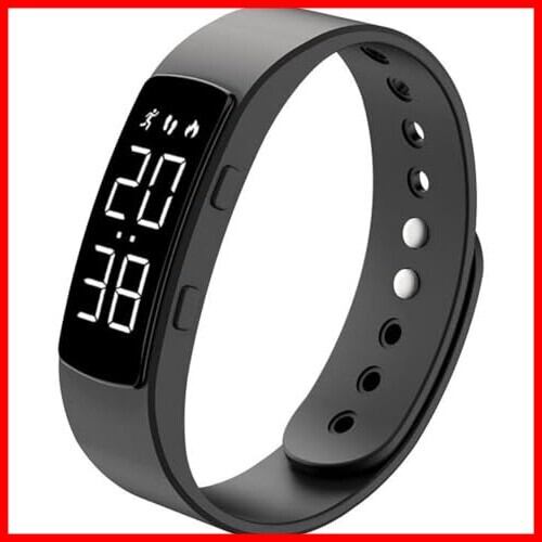 GEBYUI LED 発光 スポーツブレスレット時計|簡易歩数計・目覚まし機能 ユニセックス設計 屋外充電対応|学生・子供向け レジャー・誕生日ギフトに最適な電子ブレスレット (ブラック)