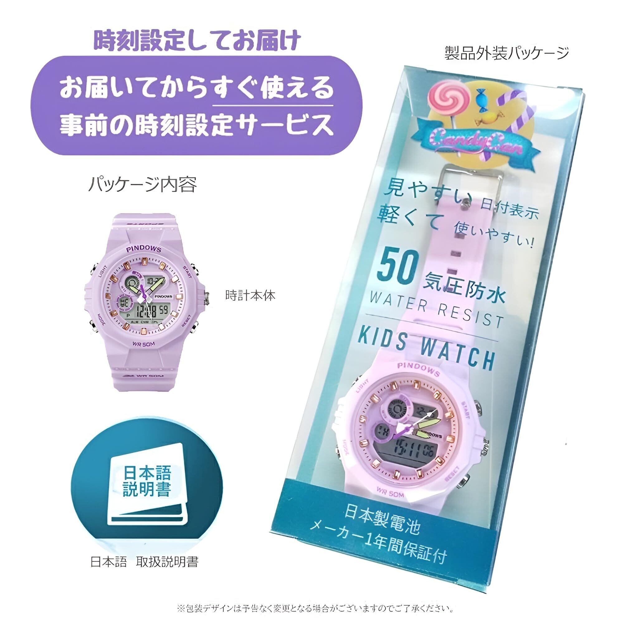 【重要部分は信頼の日本製】 日本製の電子クオーツ式ムーブメントと日本製電池を使用しており、信頼性と耐久性に優れています。この時計は、男の子も女の子も使用できるデザインで、色とりどりのバリエーションがあります。時間が設定済みで、届いたその日からすぐに使える手軽さも魅力です。